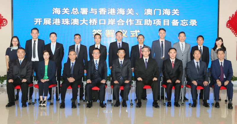 為共同建設安全便利、優質高效的港珠澳大橋口岸通關環璄,推動粵港澳三方更好地融入"一帶一路"、粵港澳大灣區建設等國家發展戰略。海關總署廣東分署李書玉主任丶香港海關鄧以海關長及澳門海關黃有力關長於今日(11月13日)在珠海拱北海關大樓共同簽署《海關總署與香港海關、澳門海關開展港珠澳大橋口岸合作互助項目備忘錄》(下稱《備忘錄》),以加強粵港澳三地海關合作互助,進一步提升通關合作水平。