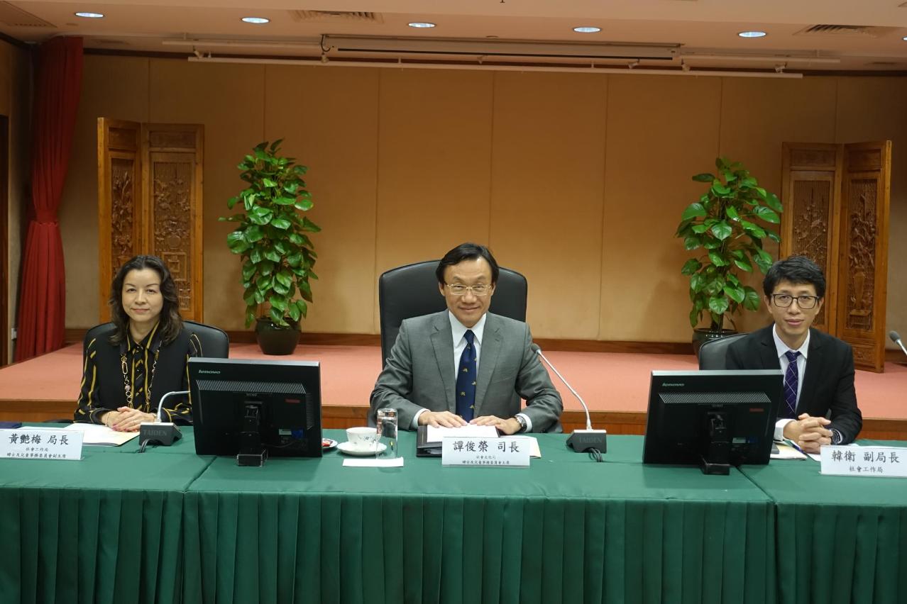 婦女及兒童事務委員會於今(19)日在教育暨青年局仲尼堂舉行2018年度第二次全體會議,由婦女及兒童事務委員會主席、社會文化司譚俊榮司長主持。主要議程包括:簡介“澳門婦女現況報告2017”研究結果,匯報“澳門婦女發展目標跨部門工作小組”工作情況,匯報委員會2018年工作情況及介紹2019工作計劃,介紹民防架構的防災避險工作,簡報家庭暴力個案中央登記2018年上半年數據,並就本澳婦女及兒童政策和社會問題交換意見等。