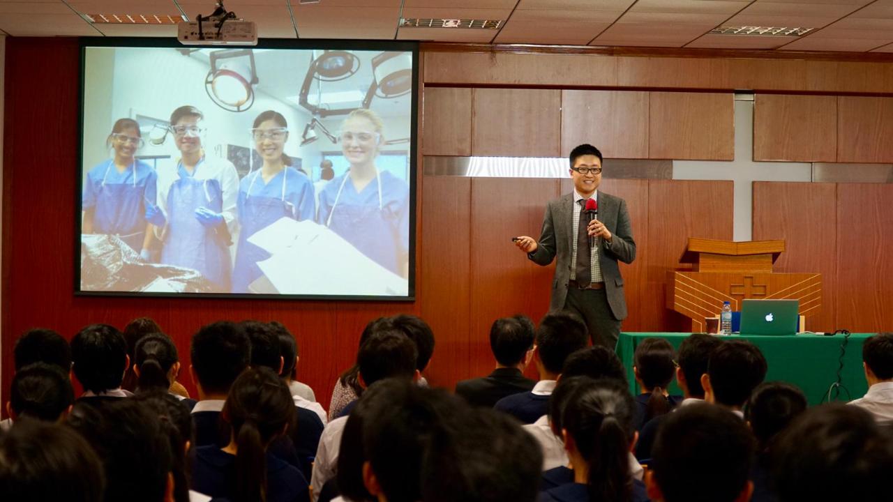 是次“海外人才回流行動考察計劃”交流活動中,葉匯醫生分別拜訪衛生局、澳門大學健康科學學院、澳門理工學院、科大醫院及鏡湖醫院,與各機構代表交流國際目前的醫學技術應用及澳門醫療行業發展趨勢,並就拓展科學技術於本澳醫療的應用展開討論。其後,他於母校培正中學舉辦醫學科技新趨勢分享會,與100多位高中理科學生分享他在醫療專業的奮鬥之路,並重點介紹人工智能、3D列印技術及擴增實境(Augmented Reality,簡稱“AR”)等醫學科技的應用及趨勢,期望為有意修讀醫科的學子提供個人經驗及職業生涯參考。