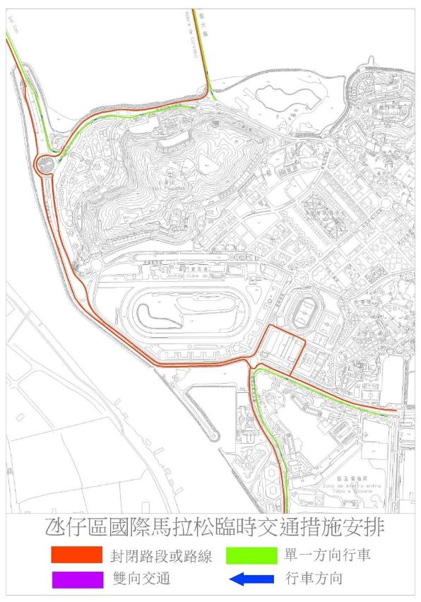 體育局舉辦澳門國際馬拉松比賽,澳門中南區、氹仔西區及路氹城區多處道路於12月2日(周日)上午實施多項臨時交通管制措施;其中,西灣大橋(氹仔往澳門方向)於當天清晨4時至上午9時封閉,嘉樂庇總督大橋則於當天清晨5時50分至上午7時封閉交通。