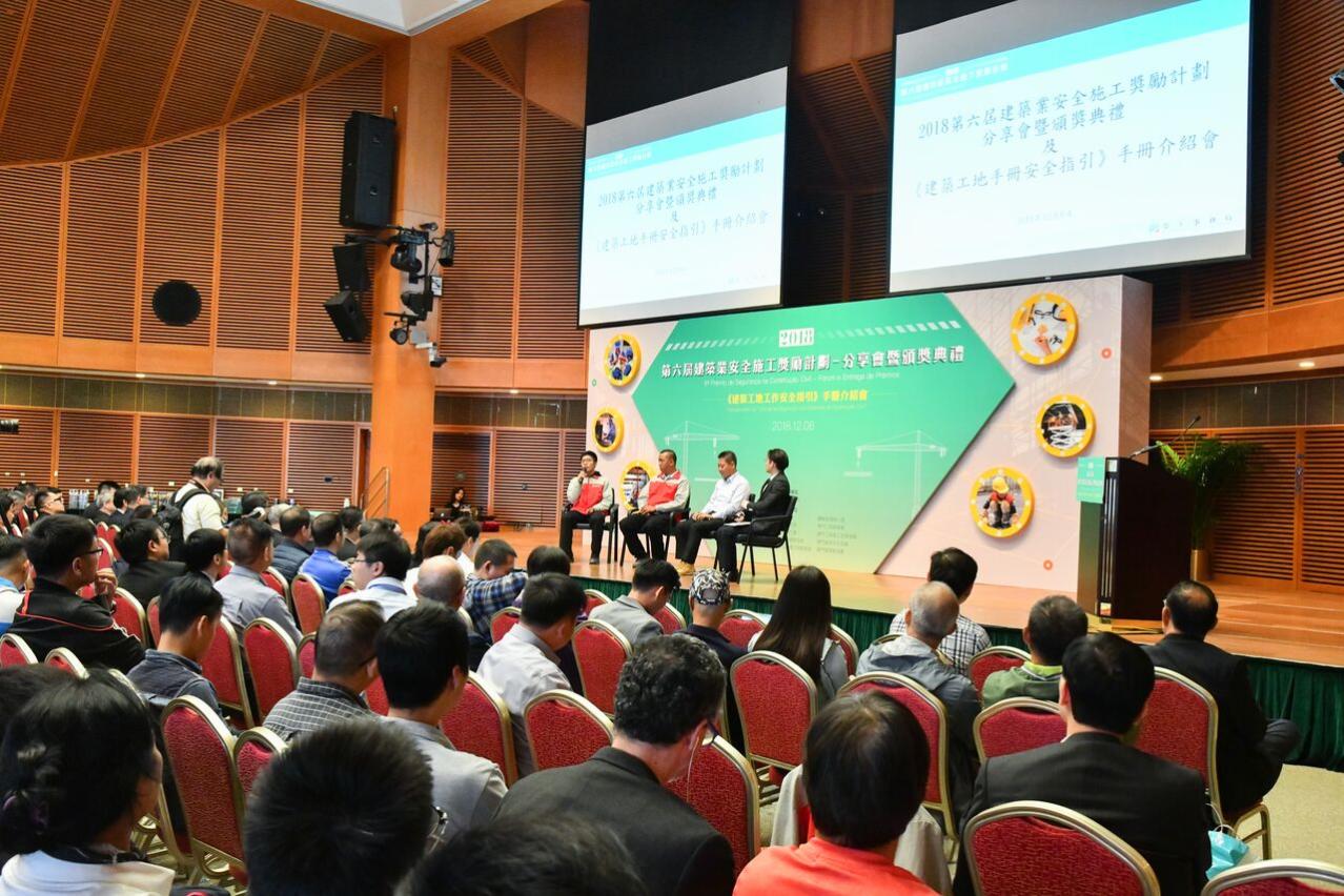 由勞工事務局主辦的「2018第六屆建築業安全施工獎勵計劃」分享會暨頒獎典禮今(6日)舉行,今屆共有23間公司、27個地盤、40名安全管理人員和95名工友參賽,反應踴躍。主辦單位勞工事務局、合辦單位土地工務運輸局、建設發展辦公室、運輸基建辦公室、建築業和職安健團體、參賽地盤的業主和監理及顧問公司,以及建築工程界人士及多名管理人員、工友等出席。頒獎禮上,勞工局並與13個得獎項目的建築公司簽署“職業安全健康約章”,並介紹今年編制的《建築工地工作安全指引》手冊。