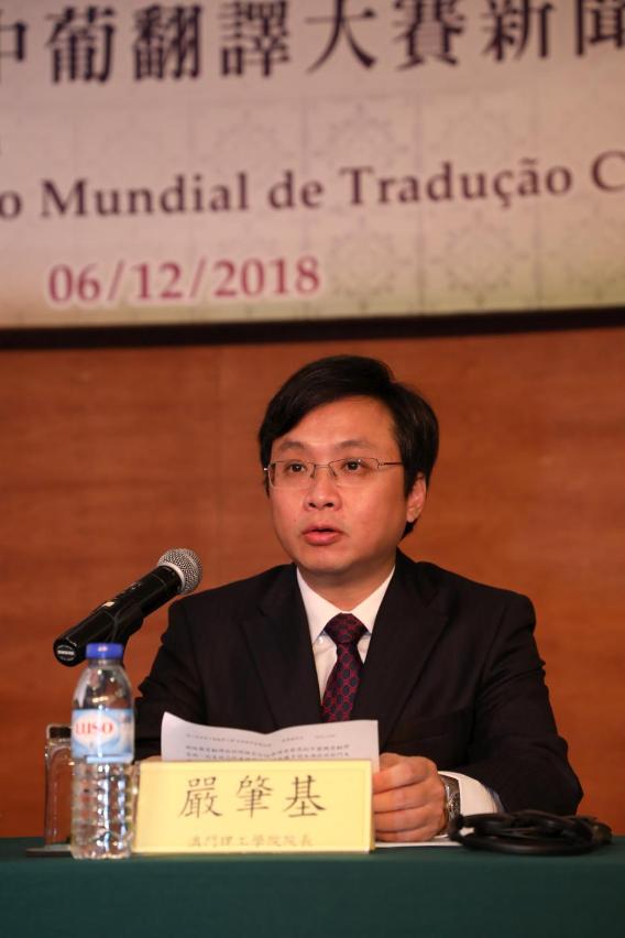 第三屆世界中葡翻譯大賽新聞發佈會12月6日(星期四)下午四時在澳門理工學院舉行,由澳門理工學院院長嚴肇基、高等教育輔助辦公室副主任曾冠雄、第三屆世界中葡翻譯大賽學術委員會主席李長森及澳門理工學院葡語水平測試中心主任Rosa Bizarro主持,介紹比賽章程及詳情。曾冠雄致詞時表示,澳門擁有深厚的葡語文化底蘊,政府一直推廣葡語教學與學習,致力打造成為中葡雙語培訓基地,配合國家“一帶一路”倡議以及與葡語國家的聯繫,冀澳門能成為亞洲的葡語中心。高等教育輔助辦公室將一如以往推動澳門高等教育培養中葡雙語人才,並透過比賽,展現澳門在高教範疇上葡語培訓的實力。嚴肇基介紹澳門理工學院持續圍繞葡語重點學科建設,開設了一系列與葡語專業相關的學位課程,並與內地科研機構及大學合作共建“中葡英機器翻譯聯合實驗室”,研發的“中葡機器翻譯系統”已取得首階段成果,包括建立了全球最大中葡互譯平行語料庫、採用最先進的神經網路機器翻譯技術開發出全球準確度最高的中葡翻譯系統,該系統已於本地落實應用並獲多個本澳政府部門支持,現已簽約應用的部門包括立法會、教育暨青年局、民政總署及財政局,另與多個政府部門在商討合作中;此外,在社會文化司譚俊榮司長的支持下推出的《Diz Lá!》葡語學習手機應用程式,亦獲多個葡語系國家用戶支持及好評。