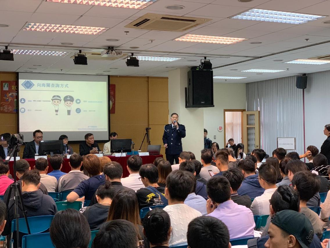 2019年春節年宵市場活動即將展開,澳門海關聯同經濟局向年宵攤位競投人士進行宣傳,講解貨物進出口流程及知識產權相關法例及規定。