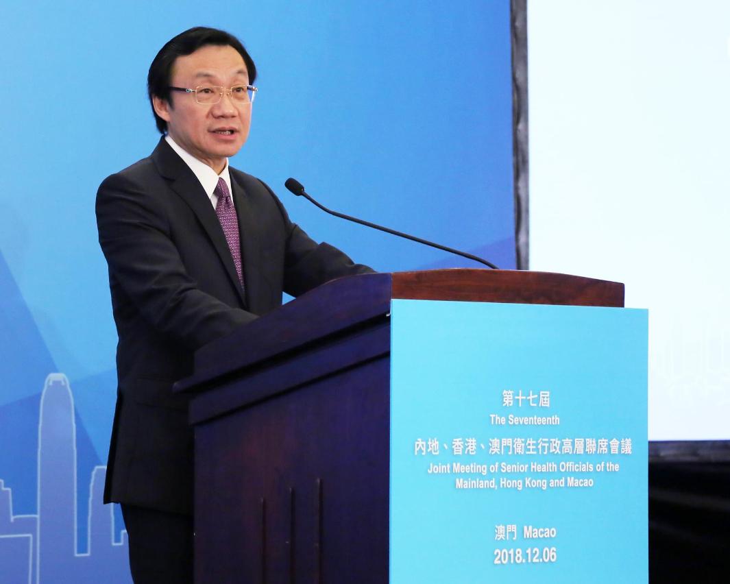 國家衛生健康委會主任馬曉偉在會議上指出,為貫徹落實習近平主席在會見香港澳門各界慶祝國家改革開放40周年訪問團的講話精神,繼續深化三地衛生健康合作,提出四點建議:1) 努力打造“健康絲綢之路”,希望港澳加快融入國家“一帶一路”、“健康絲綢之路”建設步伐,參與中俄、中南非等高級別人文交流機制和中以創新機制,借助中美、中英等高級別人文、戰略經濟或政府磋商等機制,與“一帶一路”相關國家不斷深化衛生健康領域合作,收穫早期成果。2) 積極參與實施健康中國戰略,希望港澳進一步分享在衛生體制、分級診療、現代醫院管理制度、藥品供應保障等方面的實踐經驗,助力完善國民健康政策。3)共同建設粵港澳大灣區,密切粵港澳大灣區醫療衛生合作,發揮粵港澳綜合優勢,建設國際科技創新中心,塑造健康灣區,推進醫養結合及健康養老產業發展,深化中醫藥合作,著力培育衛生健康產業經濟增長的新動力,打造世界級醫藥產業基地。4)進一步促進青年人發展,為港澳青年人,尤其是青年醫療衛生專業人才和青年醫學生,創造有利於成就人生夢想的良好社會環境。