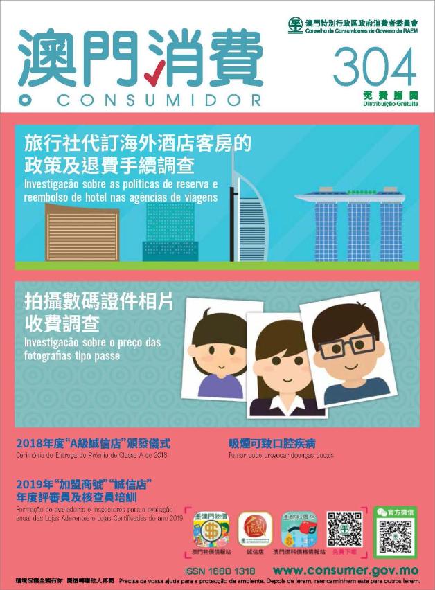 新出版的第304期《澳門消費》公佈13間獲評為2018年度A級“誠信店”的名單,以及報導消委會早前舉行頒發A級“誠信店”獎座及“消費爭議仲裁中心”顧問聘書頒授儀式的情況。