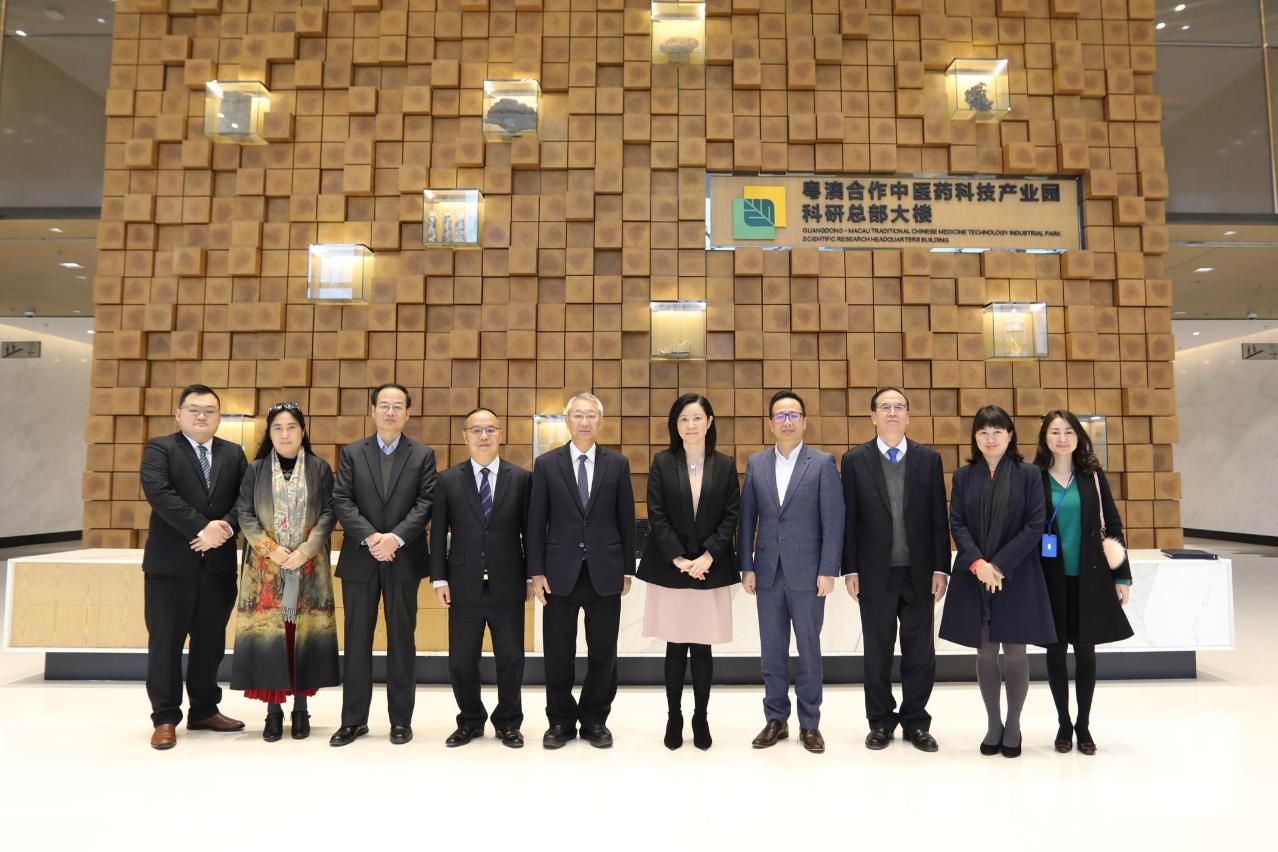 1月7日下午,澳門大學校董會主席林金城、校長宋永華一行5人,到粵澳合作中醫藥科技産業園(下稱:産業園)參觀考察,瞭解産業園平臺搭建情况,並與産業園董事長呂紅進行座談,探討雙方在人才培養、産學研、科技成果轉化等方面的合作。