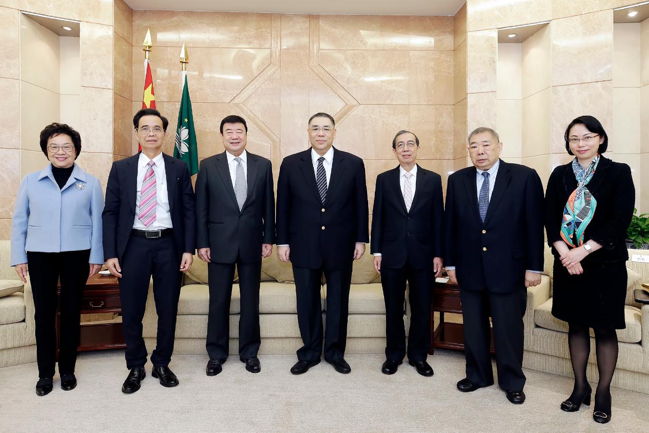 行政長官崔世安今(11)日上午在政府總部會見全國政協常委廖澤雲、馬有禮、梁華及全國政協經濟委員會副主任崔世昌和全國政協港澳台僑委員會副主任賀定一,廖澤雲代表澳區全國政協委員呈交澳門非高等教育階段“國民教育”調查研究報告。雙方並就持續優化和提升澳門特別行政區的國民教育交換意見。