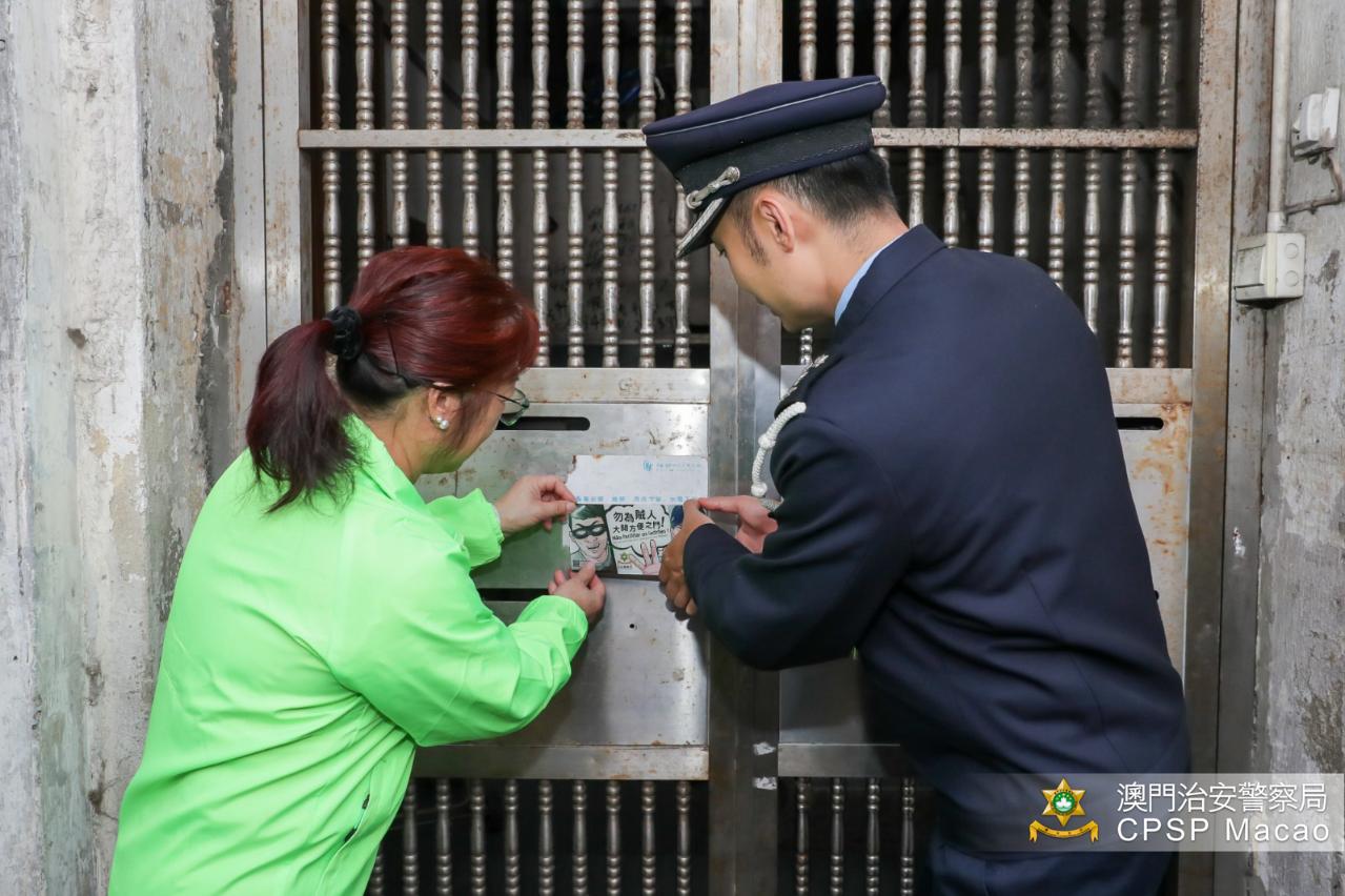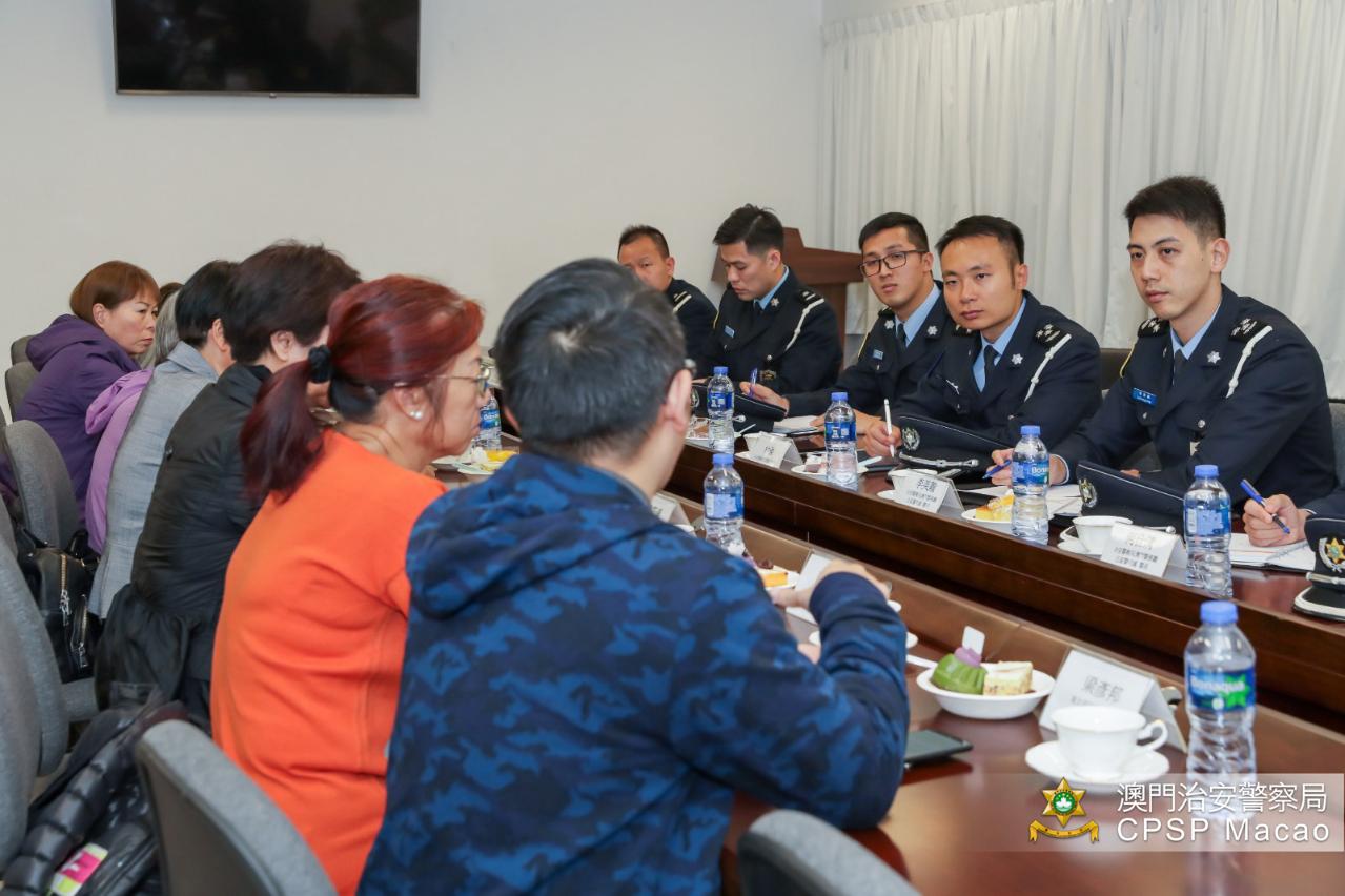 澳門街坊會聯合總會北區辦事處於1月15日到訪治安警察局進行會議,並到筷子基一帶向街坊進行冬防宣傳。