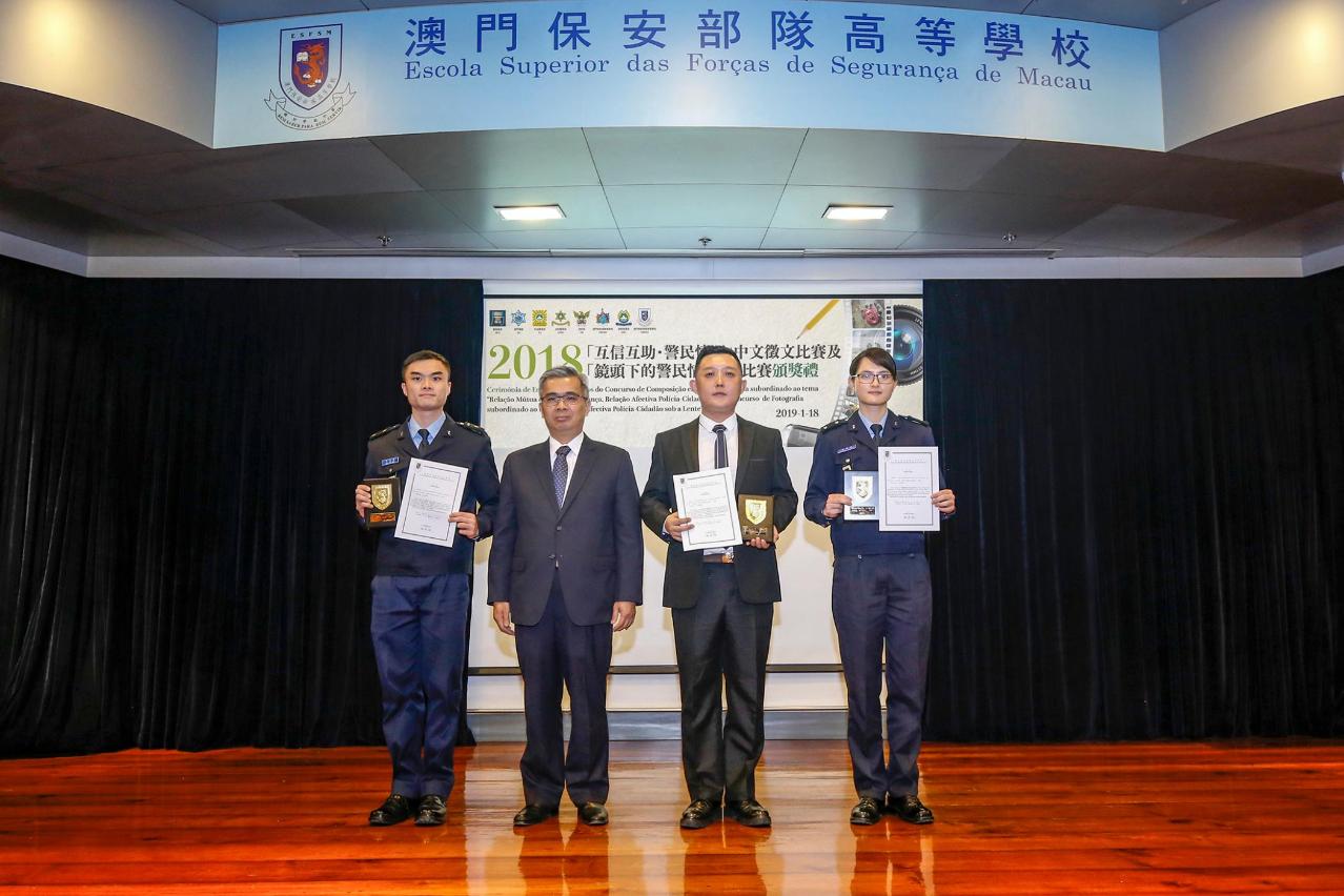 由澳門保安部隊及保安部門聯合舉辦的「互信互助‧警民情深」中文徵文比賽及「鏡頭下的警民情」攝影比賽頒奬禮,於2019年1月18日在保安高校禮堂舉行,頒奬禮由保安司黃少澤司長主持,保安部隊及保安部門、各高等院校、中學等獲獎單位均派出代表,約180人出席。