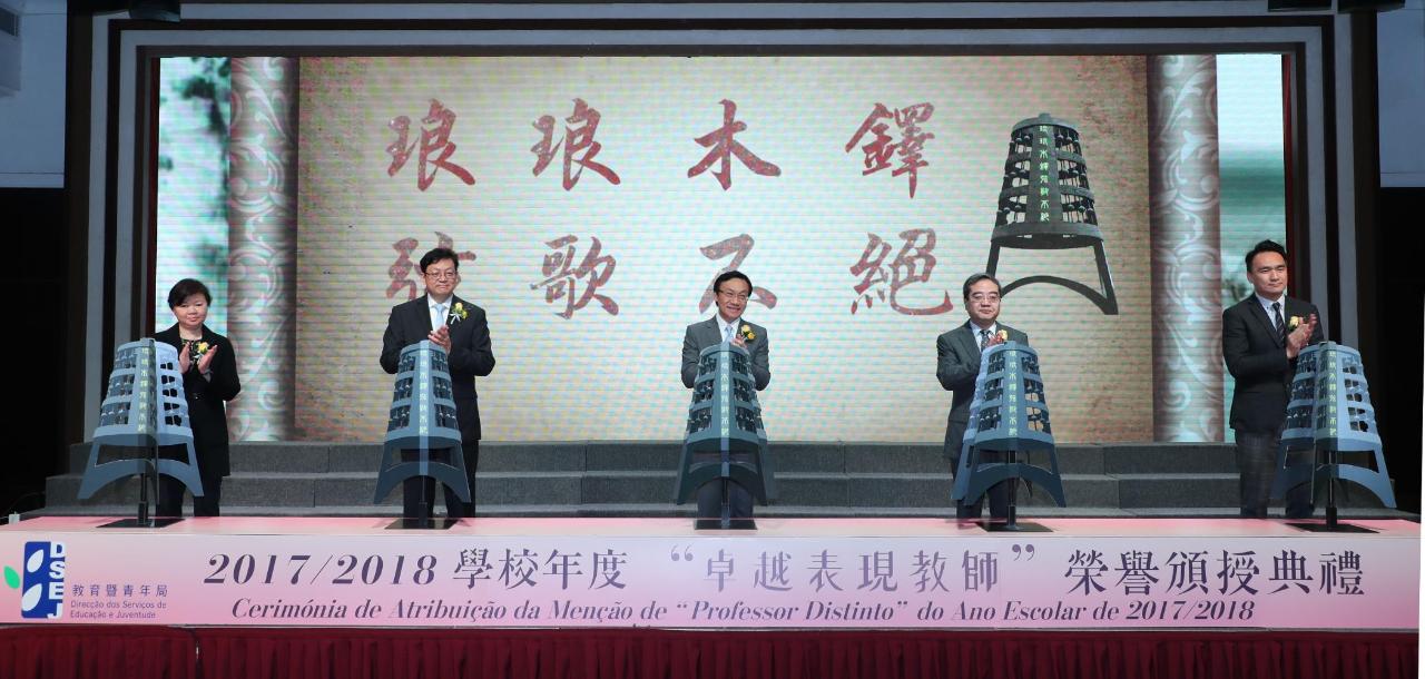 教育暨青年局於2019年1月26日假澳門旅遊塔會展娛樂中心舉行2017/2018學校年度“卓越表現教師”榮譽頒授典禮。典禮由社會文化司司長譚俊榮、教青局局長兼教學人員專業委員會主席老柏生、中聯辦教育與青年工作部副部長苟人民,以及教青局副局長梁慧琪及龔志明主禮。出席典禮的嘉賓還包括非高等教育委員會委員、青年事務委員會委員、教學人員專業委員會委員、教師培訓工作諮詢協調小組成員、協助評審“卓越表現教師”專家小組成員、學校領導及教師,以及獲頒授榮譽的教師及其親友等共約260人。