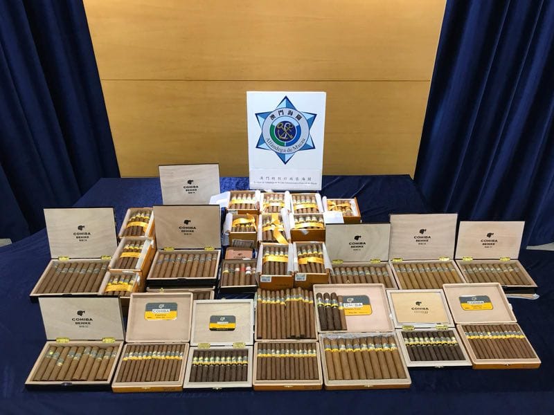 另外,海關根據另一宗舉報,於本月29日突擊巡查位於新口岸區、皇朝區及氹仔區五間售賣雪茄的店舖,並於各店均搜出冒牌雪茄,合共504支,每支正貨價約澳門幣200元至800元,總值約澳門幣25萬。1名男性同為五間店舖的負責人,連同4名女性售貨員一併被帶走協助調查。