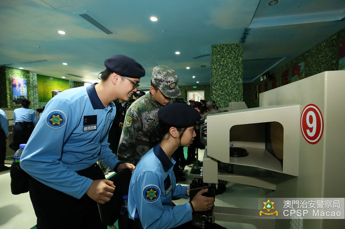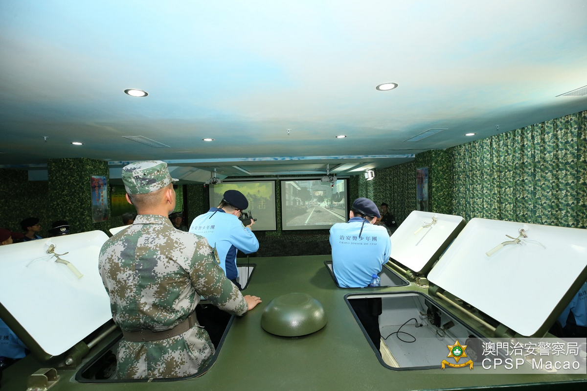 治安警察局人員還親身體驗了多個部隊日常進行的駕駛戰車、射擊等的模擬訓練項目,以及觀看駐澳部隊的介紹影片,了解駐澳門部隊的組建、接管澳門防務工作、戰士們的日常訓練、部隊熱心服務社會積極參與公益活動等多個方面。