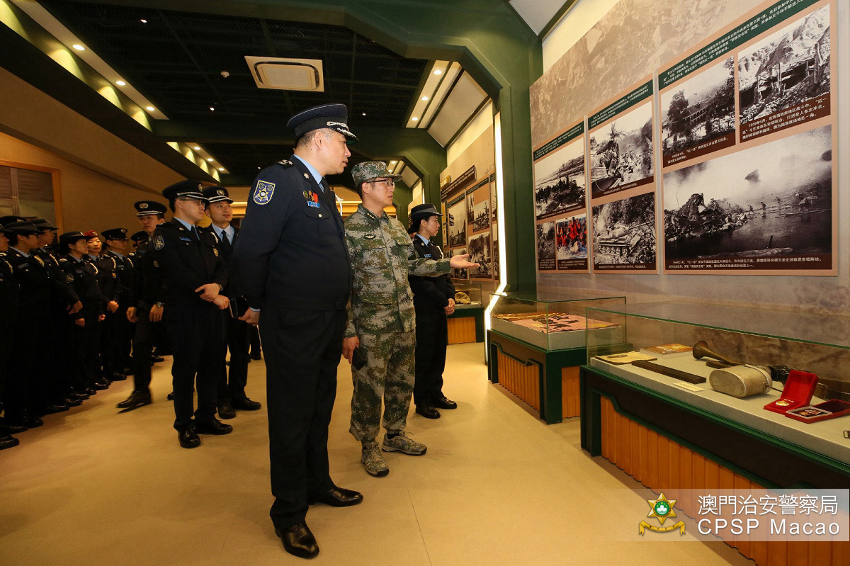 策劃行動廳梁慶康廳長、警察學校劉幸儀代校長,帶領治安警少年團及治安警察局警員共130人,在駐澳部隊辦公室參謀許順喬上尉及步兵營營長朱毓曦少校引領下,參觀了駐澳部隊的宿舍、中國人民解放軍歷史陳列館、駐澳部隊軍史館及戰士畫苑,透過製作精細的展示模型、書畫藝術作品、軍事介紹影片等,讓在場的一眾少年團成員及同事們深入認識中國人民解放軍在人員、武器裝備與軍事技術方面的歷史、現今面貌及未來發展。