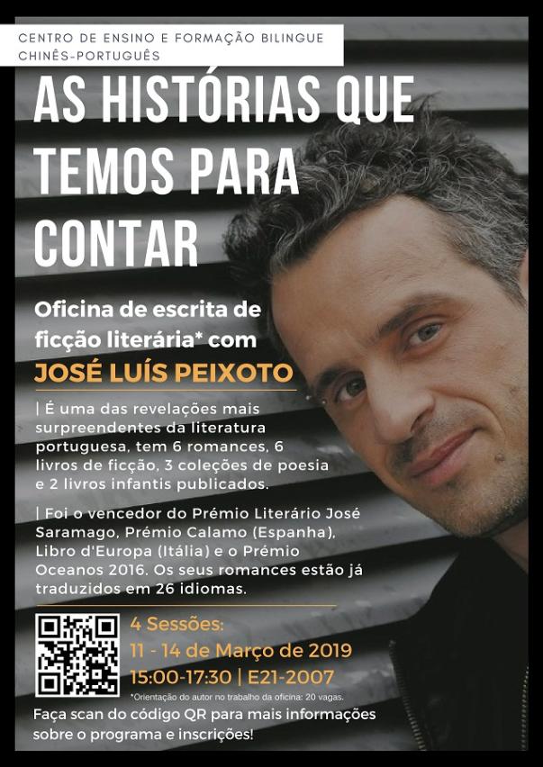 澳門大學葡文系中葡雙語教學暨培訓中心將於3月11至14日舉辦文學創意寫作工作坊,葡萄牙著名作家裴若則(José Luís Peixoto)將分享其創作經驗及教授創意寫作的方法。