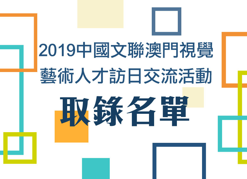 由中國文聯港澳臺辦公室、澳門基金會、中國文學藝術基金會及中國文聯文藝研修院聯合主辦之“2019中國文聯澳門視覺藝術人才訪日交流活動”取錄名單已公佈於澳門基金會網頁(https://www.fmac.org.mo/activity/activityContent_8462)。
