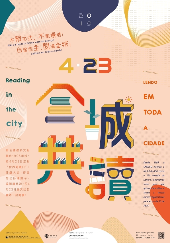 每年的4月23日為“世界閱讀日”。為持續推動社會閱讀風氣,培養閱讀習慣,文化局及教育暨青年局聯合主辦、澳門高校圖書館聯盟協辦之澳門首屆“4‧23全城共讀”活動將於今年4月23日舉行,主辦單位現正積極招募“共讀點”,歡迎有興趣的單位及人士報名參與。