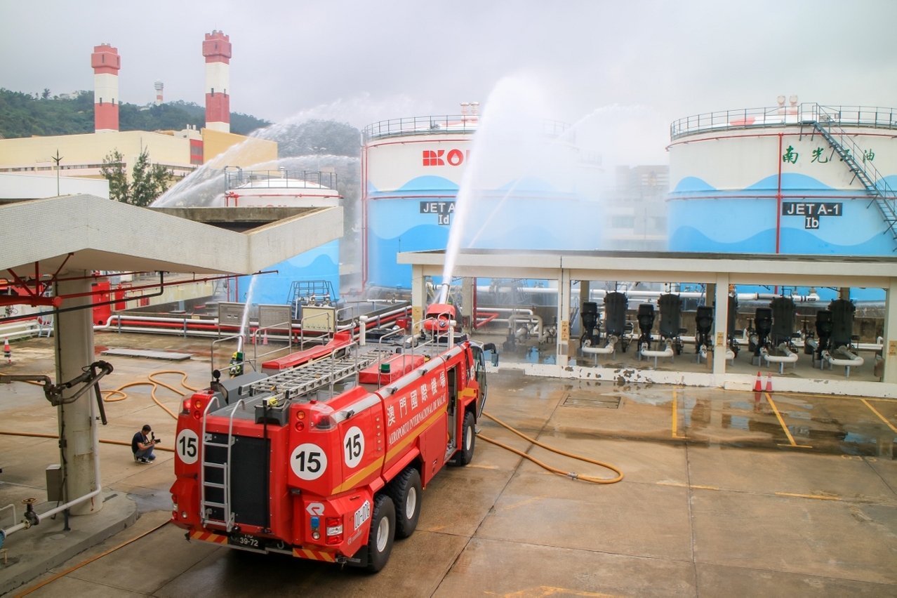 澳門國際機場今午(3月22日)舉行了年度油庫演習,模擬機場油庫發生火災,各參與單位緊密合作進行救災,演習順利完結。