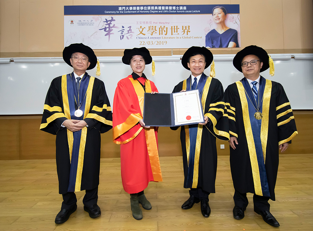 頒授典禮上,社會文化司司長譚俊榮在澳大校董會主席林金城和校長宋永華陪同下,向王安憶授予榮譽文學博士學位,以表彰其在文學創作上取得的重要成就,以及對世界漢語文壇所做出的傑出貢獻。