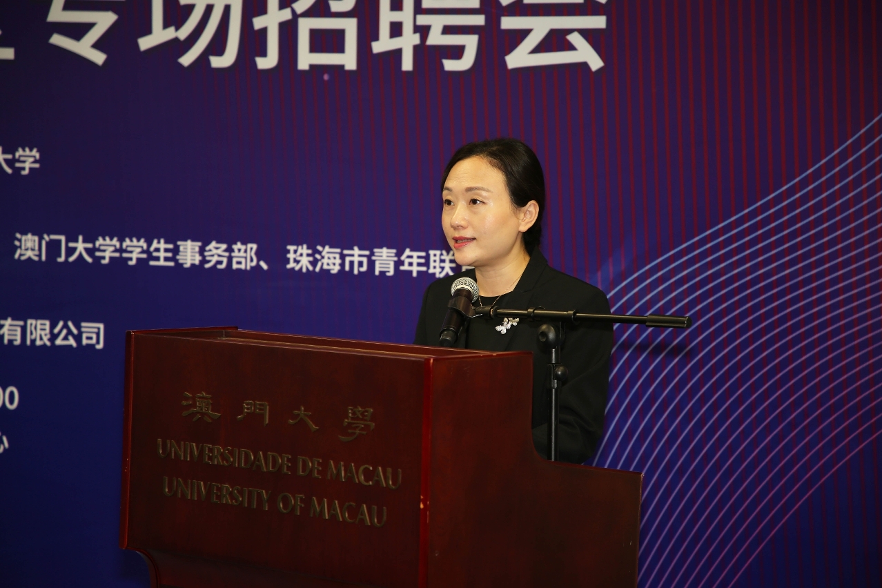 澳大副校長(學生事務)蘇基朗致辭時表示,去年澳大與橫琴新區澳門事務局合作,為學生提供了到橫琴實習的機會,學生也在實習中充分了解到橫琴的發展狀況以及未來的機會。今天的招聘會更是為想要在橫琴發展的澳大學生提供了一個更直接、有效的平台。他續表示,澳大一直不遺餘力地投放資源,發揮澳門作為大灣區的世界旅遊休閒中心、中國與葡語國家的商貿合作服務平台的定位,為大灣區輸出優秀人才。而橫琴就是許多澳大人在大灣區的落腳點,這與橫琴出台各種惠澳政策、良好的就業創業氛圍息息相關。