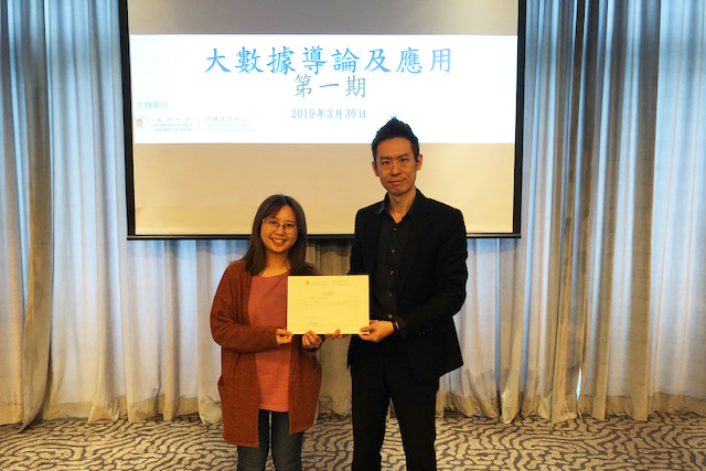 為配合澳門大學於2019/2020學年新增的理學碩士學位(數據科學)課程,澳大持續進修中心開辦了專為對智能大數據及數據科學有興趣的人士而設的短期課程:大數據導論及應用,首屆學員已順利完成課程,第二期課程預計於今年內推出。