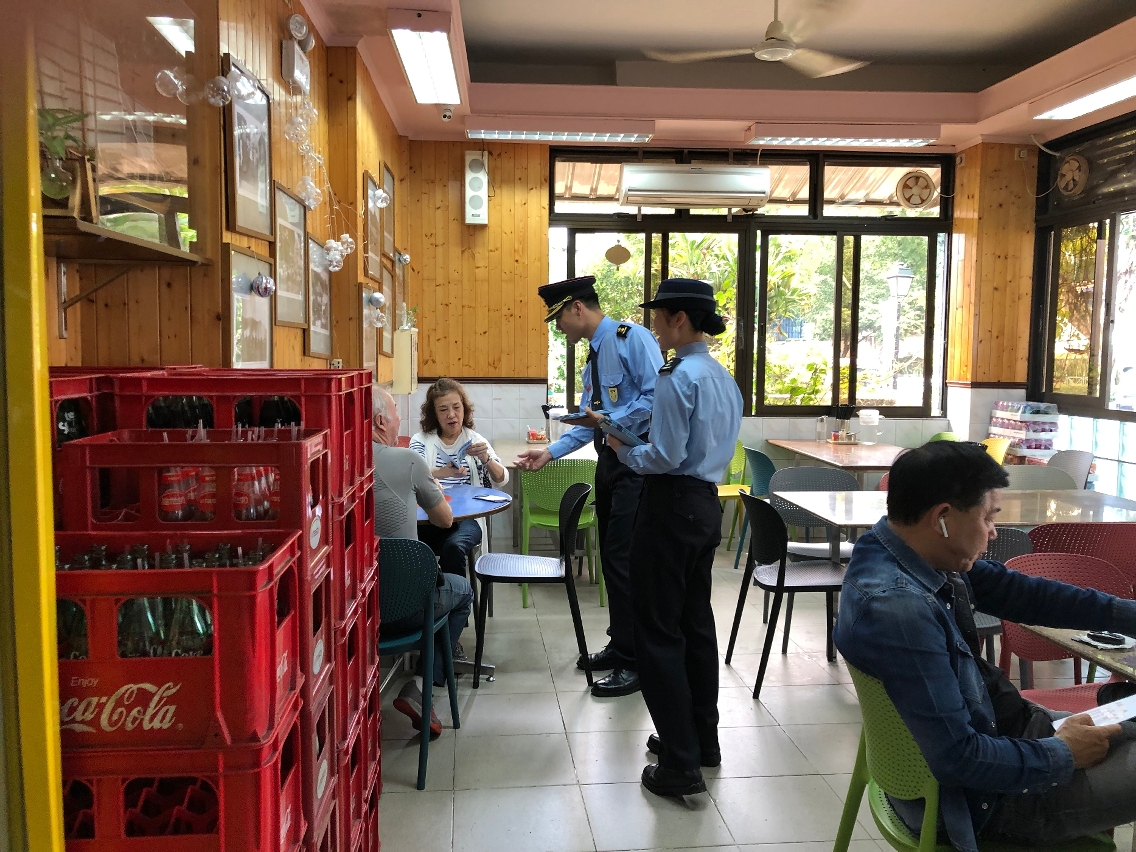 保安高校陳國棠副消防總長、徐小華副警司、李嘉儀副警司及黃仲勝副一等消防區長,於(16日)下午前往路環市區進行“颱風期間風暴潮低窪地區疏散撤離計劃”的宣傳活動,向當地商戶及居民派發關於《颱風期間風暴潮低窪地區疏散撤離計劃》、《風暴潮防災指引》及《風暴潮高點及低窪地區音頻警報信號》的小冊子,並向其講解相關小冊子內的信息,同時向市民介紹4月27日由多個部門聯合進行的“水晶魚2019”全澳大型民防演習,以及報名的方法。