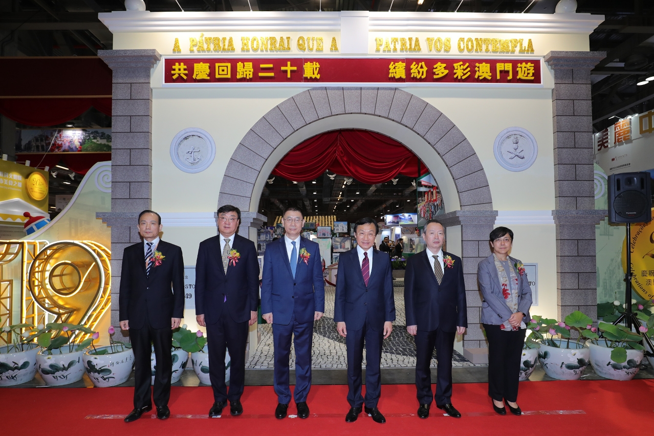 《共慶回歸二十載 繽紛多彩澳門遊》特展開館儀式緊接旅博會開幕禮舉行。澳門特別行政區政府社會文化司司長譚俊榮、中央人民政府駐澳門特別行政區聯絡辦公室副主任姚堅、中華人民共和國外交部駐澳門特別行政區特派員公署副特派員袁恒革、中華人民共和國文化和旅遊部港澳台辦公室滿宏衛巡視員、澳門特別行政區政府旅遊局局長文綺華及澳門旅行社協會會長劉雅煌主持開館儀式。