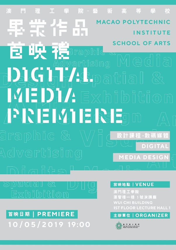 由澳門理工學院藝術高等學校設計課程主辦,數碼媒體專業四年級畢業生籌辦的“數碼媒體畢業作品首映禮",將於五月十日晚上七時,在澳門理工學院匯智樓一樓一號演講廳舉行。首映禮上,將首次公開放映由數碼媒體專業應屆畢業生以個人或小組形式,創作及製作的十一部作品,向公眾展示其四年來的學習成果和思考心得。
