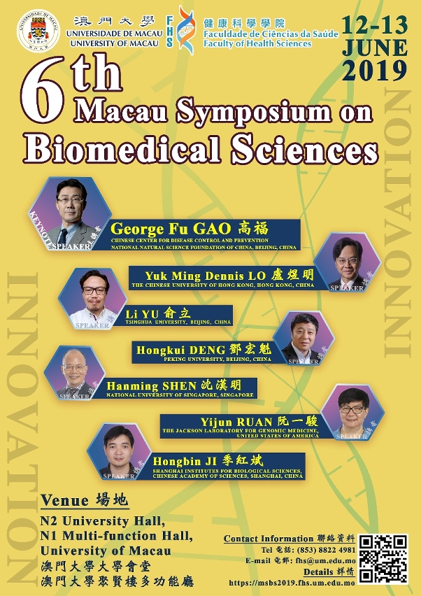 由澳門大學健康科學學院主辦的“第六屆澳門生物醫學科學研討會”將於6月12至13日在澳大舉行。今屆研討會以“創新”為題,邀請國際頂尖專家學者討論生物醫學的前沿研究和創新技術,歡迎有興趣人士報名參加。