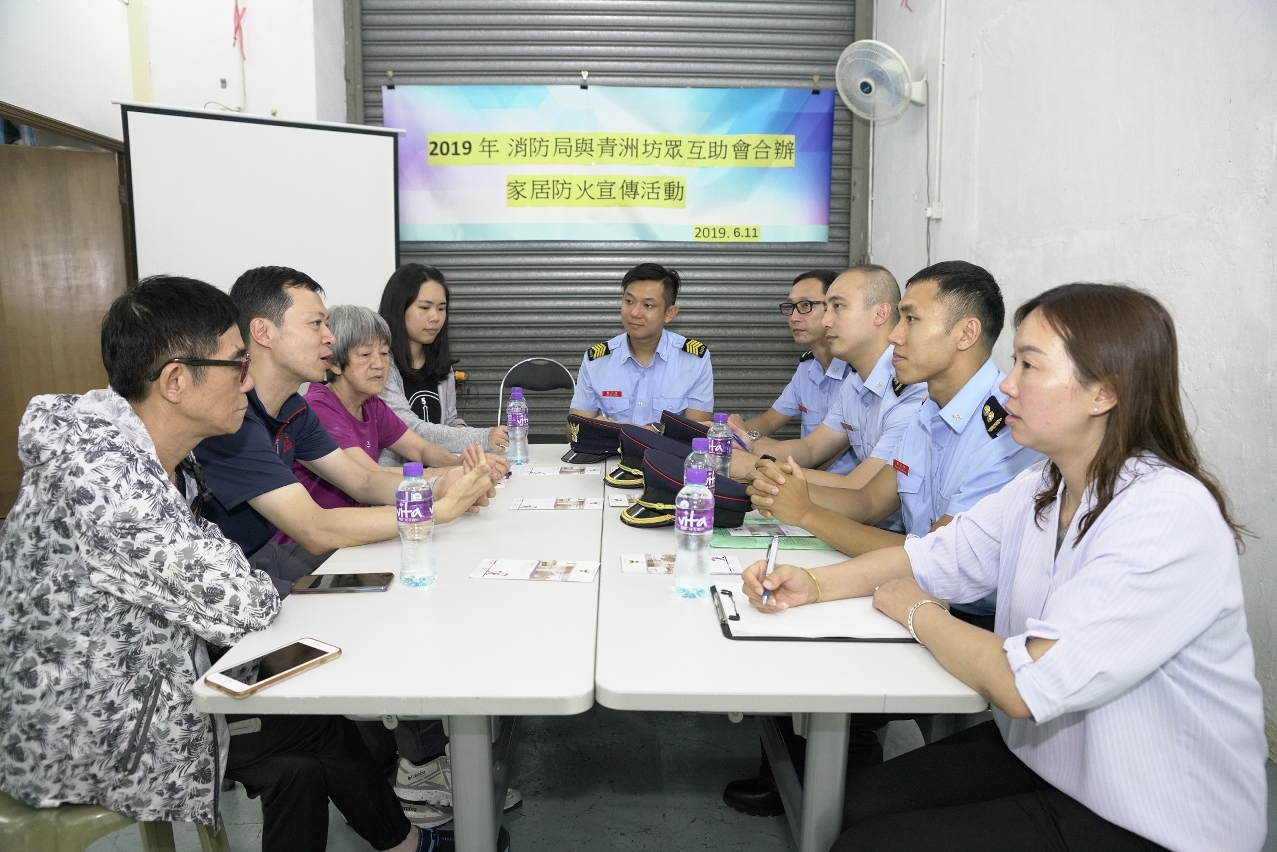 消防局一向重視家居防火宣傳工作,本著“以防為主 防消結合”的原則,防患於未然,於本年6月3日、11日及14日派出官員分別拜訪了“澳門街總中區辦事處社區消防安全主任”、“青洲坊眾互助會”及“工聯離島辦事處”,期間進行座談交流,聽取坊會就防火、滅火及救援等工作的意見,亦為坊會及區內一帶居民舉辦防火、救護知識及燃料安全知識講座,講解日常應注意的防火事項,例如遇火警時的應變措施、救護工具及設備、急救小知識、正確使用救護服務、以及如何安全使用燃料和爐具等,同時向區內居民派發各類消防安全宣傳單張及張貼海報,藉此加強居民的防火、救護、安全使用爐具意識,從而保障生命及財產安全。