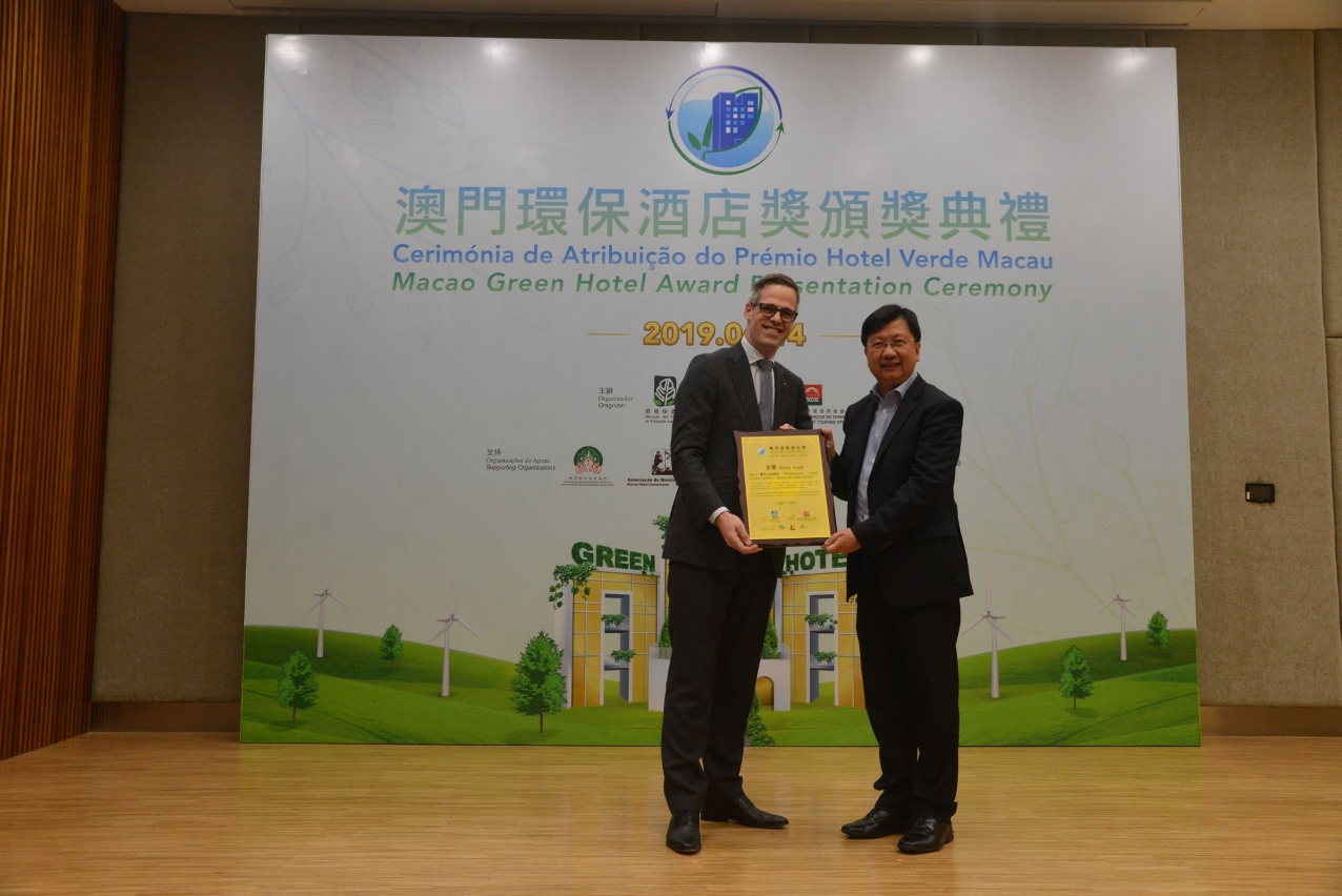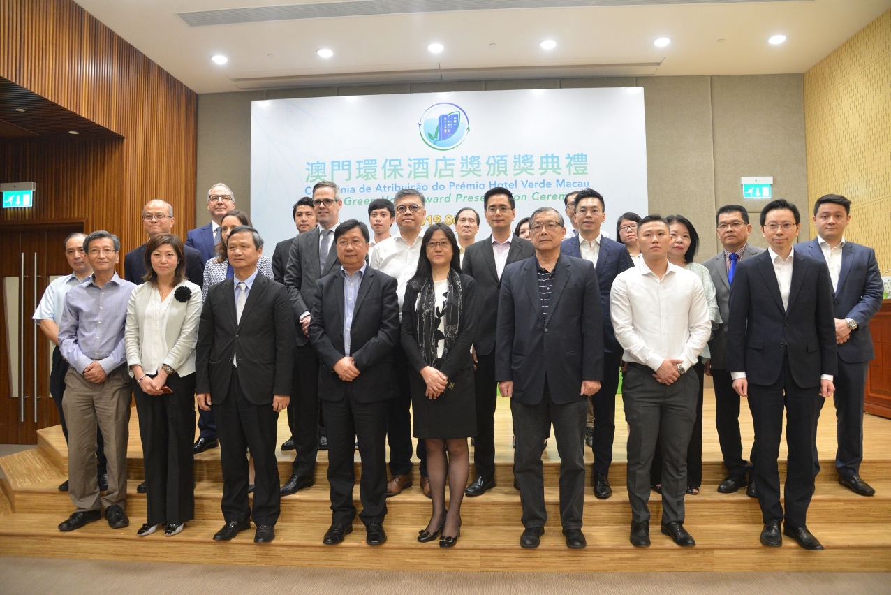 由環保局主辦的“澳門環保酒店獎”踏入第十二屆,得獎酒店的累積數目共55間,在頒獎典禮上各嘉賓向19間得獎酒店頒發“2018年澳門環保酒店獎”獎項。比較2012年與2018年的環保績效,所有得獎酒店每間客房的平均耗電量減少超過28,000度電;每間酒店客房的平均耗水量減少約260立方米;每間酒店客房的平均廢物棄置量減少逾1.7公噸,減幅超過45%;約64%的得獎酒店已進行廚餘回收,廚餘累計總回收量約4,500公噸;達八成的得獎酒店已進行包括廢紙、膠樽、鋁罐、玻璃樽和廢舊電池等資源回收工作,總回收量累計已超過21萬公噸。另外,約20%的得獎酒店已使用電動車輛取代燃油車輛作穿梭巴士,得獎酒店亦採取適當措施以減少於酒店內提供一次性的塑膠樽裝飲料。