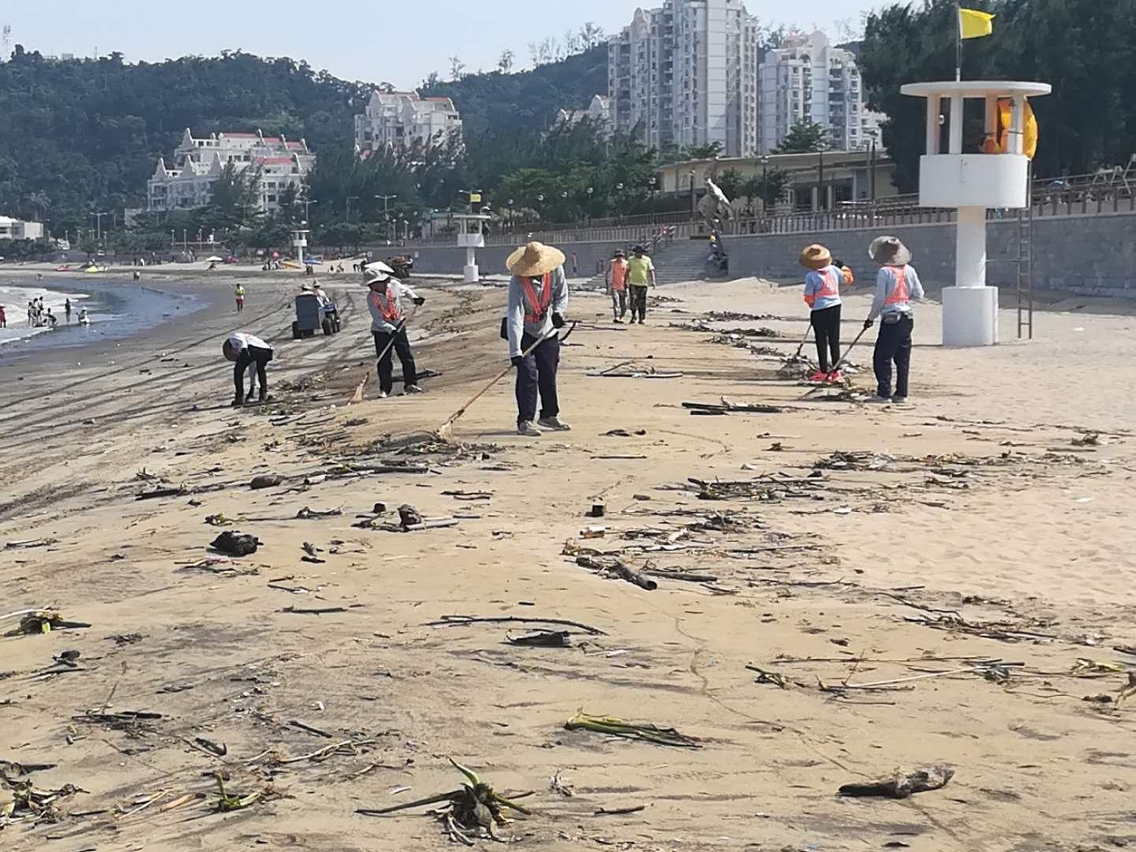 今日早上海事及水務局人員巡視黑沙海灘時,發現灘面有較多垃圾堆積,估計可能由於今日改吹東至東南風,把海上垃圾吹上灘面。局方馬上通知清潔專營公司加派人手跟進清理。惟清理過後,垃圾仍持續隨水漂上灘面,因此相關清理工作一直持續至傍晚,且預計明早仍需要繼續進行清理。竹灣海灘則沒有出現異常情況。