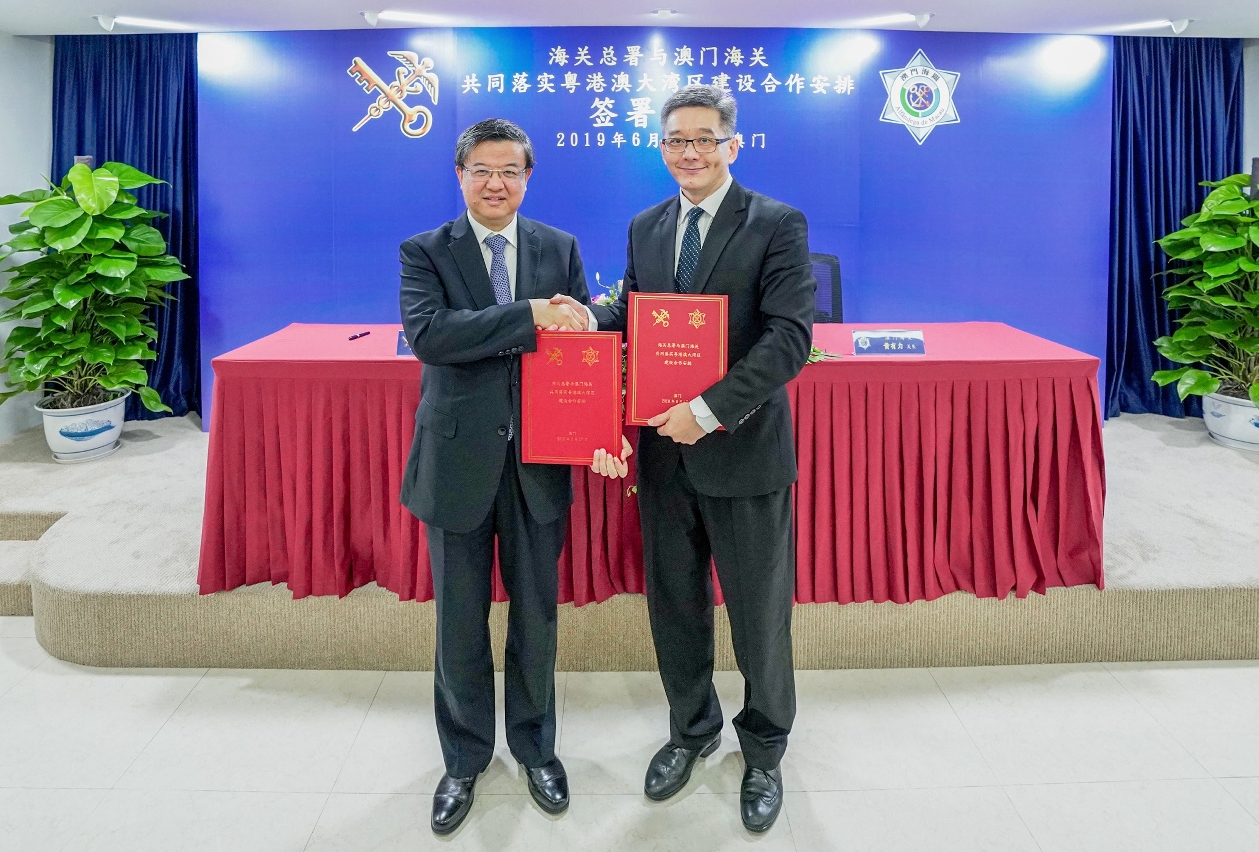 海關總署署長倪岳峰與澳門海關關長黃有力今天(17日)下午在澳門海關總部大樓共同簽署《海關總署與澳門海關共同落實粵港澳大灣區建設合作安排》,進一步加強澳門海關與內地海關及其他相關口岸執法部門的交流與合作,以推進貨物、人員等在大灣區內便捷流動。