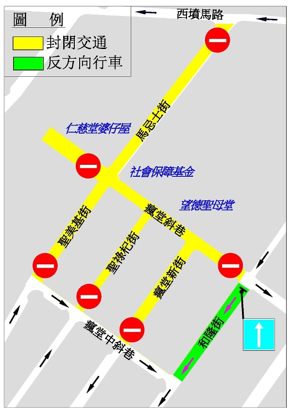 望德堂區臨時交通安排示意圖