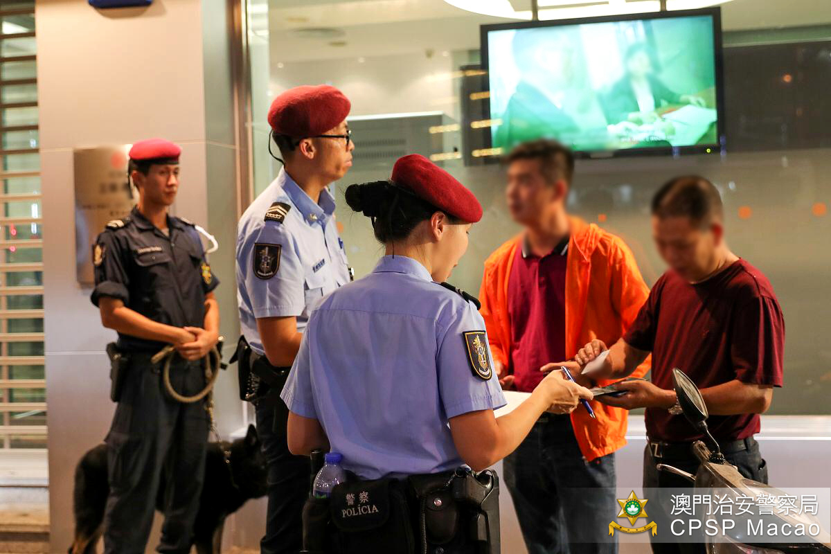 其中,特警隊帶同警犬於昨日 (22日) 晚上進行「雷霆2019」行動,在新口岸及路氹金光大道一帶巡查,期間截查了50名人士(33男17女),當中17人(12男5女)需帶返警局調查,經調查發現15名涉嫌從事非法兌換貨幣、2名涉嫌從事賣淫活動,有關人士已被送交相關部門作跟進。
