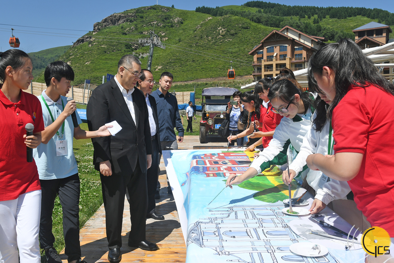 崔世安在觀看畫卷時,向參與繪畫的學生了解繪畫情況和所需時間。待畫卷完成,崔世安、傅自應、夏延軍、羅立文及張家口市長武衛東在畫卷上簽名。