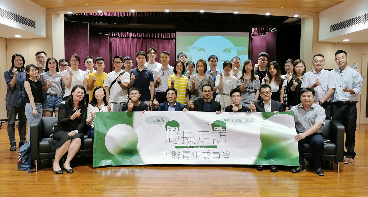 為加強政府與本澳青年之間的溝通交流,法務局局長劉德學於七月二十五日前往沙梨頭工聯大廈走訪澳門工會聯合總會青年委員會,與近三十多名的青年委員和幹事進行了互動交流。