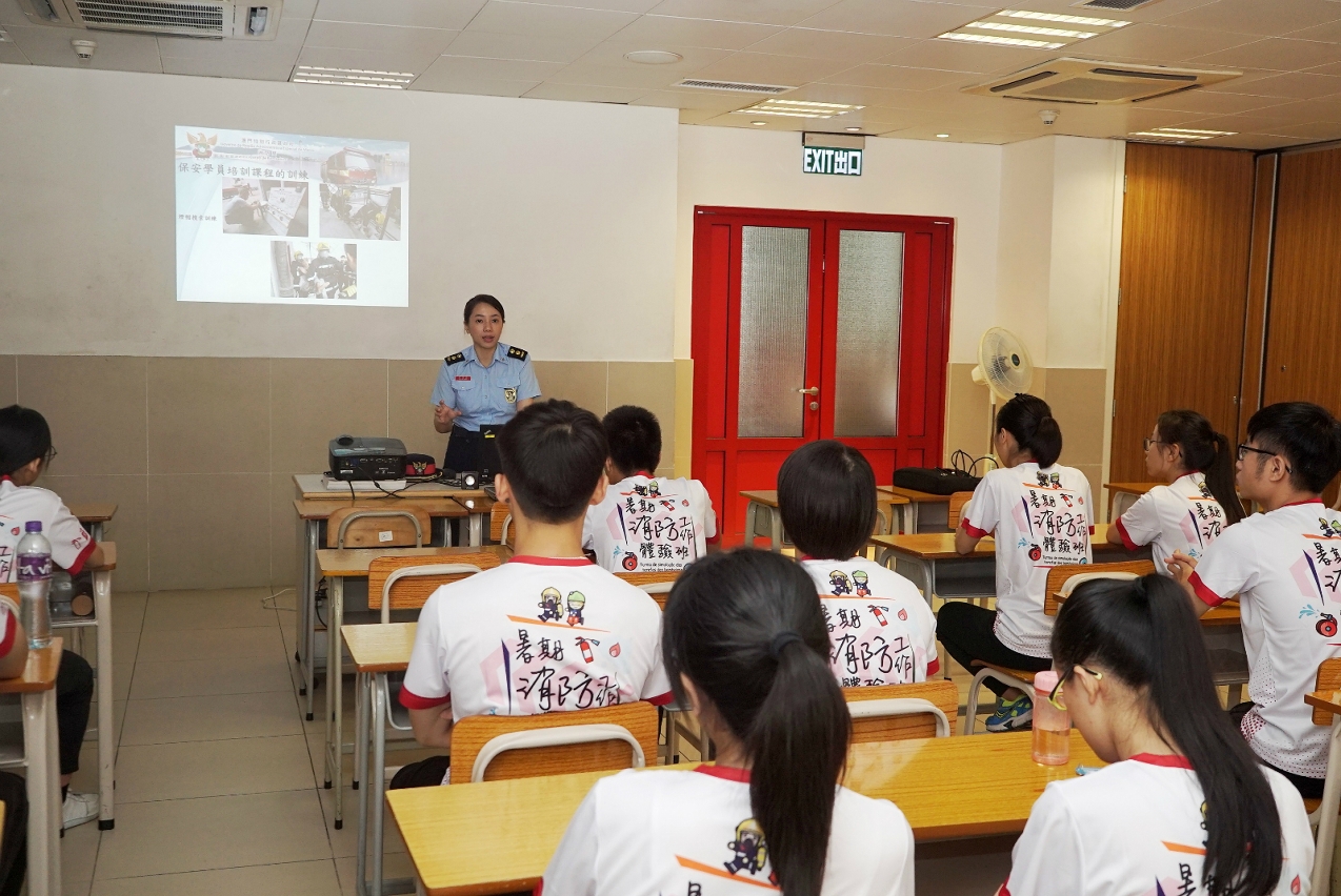 消防局全力貫徹特區政府青年培育工作,致力提升青少年的消防安全意識,為鼓勵靑少年在暑假期間善用餘暇,消防局與教育暨青年局合辦「2019消防工作體驗班」,透過消防工作體驗加深學員對消防工作的了解,日後更好地配合消防局救援、救護及防火工作,並加強青少年的公民意識、以及服務社會的精神。
