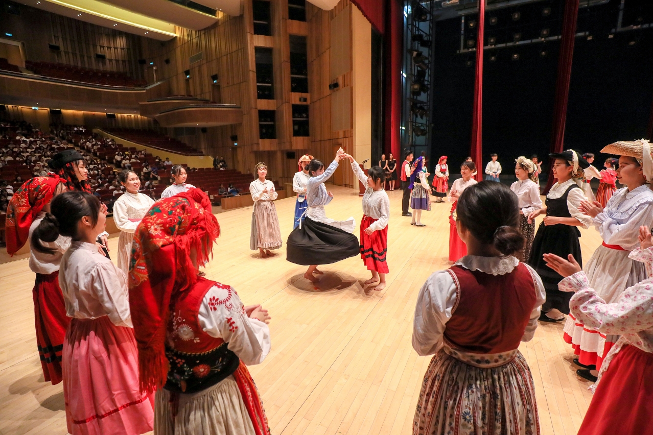 閉幕禮上,葡萄牙駐澳門及香港總領事館總領事歐冠溢、澳大葡文系副教授、葡語課程統籌人Ana Nunes分別致詞。一眾學員在台上以葡語朗誦和音樂歌唱,更穿上色彩豐富的民族服裝,手挽手演繹傳統的土風舞。來自韓國的學員Seong Seon Min認為,密集式的葡語教學內容實用,令他在短時間內大大提升葡語寫作及聽說能力,他表示明年也有意繼續報讀。修讀基礎班的胡文建表示,課程師資優秀,授課老師都是來自葡語系國家的教師,他們在發音糾正上會循循善誘。他會向朋友推薦這個課程,希望下一屆一起報讀。另一位學員張璐穎修讀今屆高級班,她認為澳大提供一個良好的學習葡語氛圍,而且能結交來自世界不同地方的學員,彼此互相交流和學習。今屆課程吸引來自中國內地、澳門、香港、台灣、韓國、日本、馬來西亞、菲律賓、新加坡、意大利、英國、巴西和美國等地的學生參與。