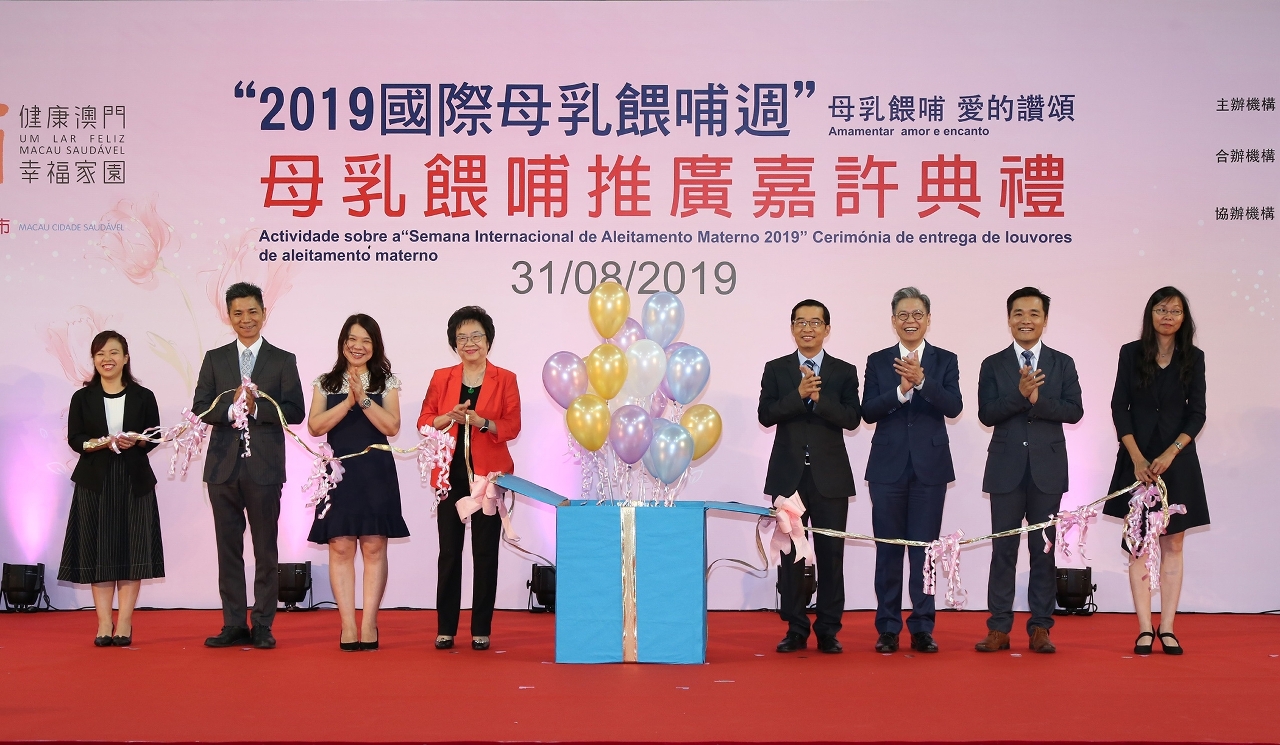 應2019國際母乳餵哺週,由衛生局主辦,澳門婦女聯合總會合辦,澳門母乳協會、澳門母乳及育兒推廣協會協辦的“2019母乳餵哺推廣嘉許典禮”於今(8月31日)在塔石體育館舉行,衛生局代局長鄭成業及多個政府部門代表出席典禮、還有540個家庭合共1980人參加是次活動,較去年增6%。今年獲得嘉許的公營機構共76間、私營機構共63間,另分別有156位“持續餵哺母乳2歲或以上”、256位“持續餵哺母乳1歲或以上”及204位“持續餵哺母乳至6個月或以上”的媽媽接受嘉許。