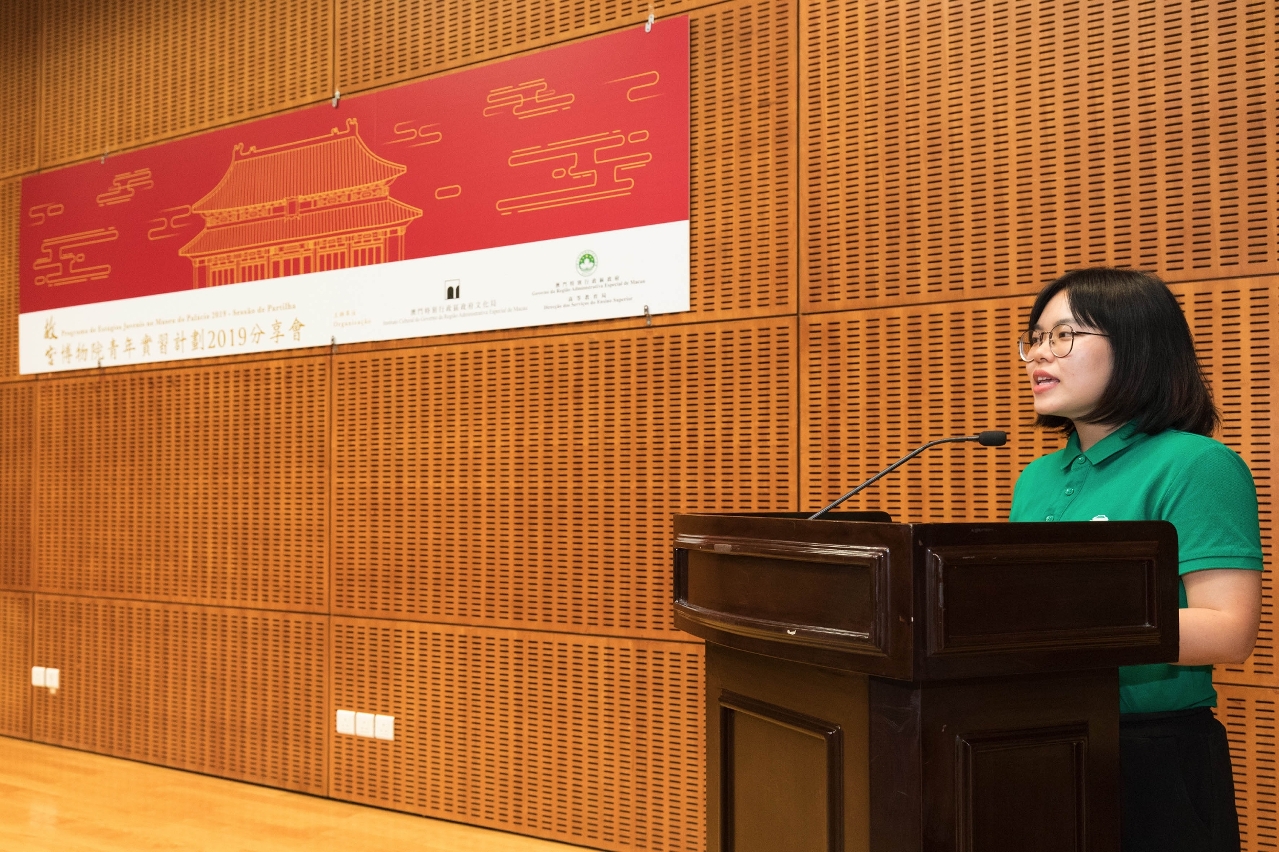 “故宮博物院青年實習計劃2019”分享會於今日(8月31日)在文化局澳門藝術博物館演講廳舉行。16名澳門青年早前在故宮博物院完成實習,通過深度的文化體驗,提升個人知識技能,充分認識中華文化,在會上分享其實習收穫和感悟。