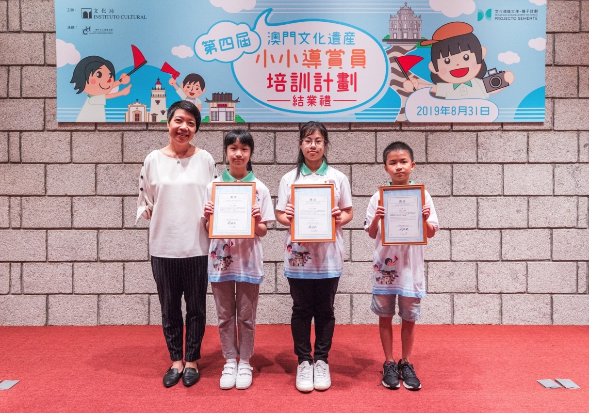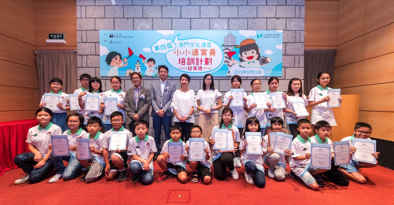 “澳門文化遺產小小導賞員培訓計劃”已連續四年於暑假期間舉辦,活動舉辦至今一直得到學員、家長及社會各界的認可和正面評價,並已培訓逾百名的小小導賞員。第四屆培訓活動已於7月2日至30日期間順利舉行,26名學員經過一個月的培訓,最後通過考核正式成為澳門文化遺產小小導賞員。文化局代局長梁惠敏在結業典禮上致辭時表示,青少年是社會未來的主人翁及棟樑,是社會可持續發展的動力,肩負起承傳和發揚中華文化的責任,為此,文化局冀望透過每年舉辦不同類型的青少年活動,培養其探索歷史文化的興趣,主動發掘澳門歷史文化的內涵和價值,共同保護和傳播本地和中華文化。