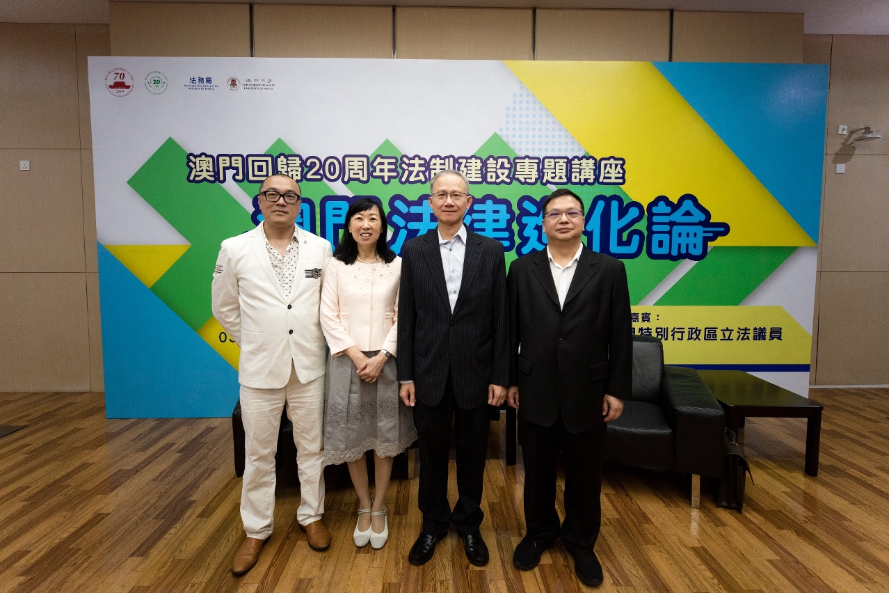 為回顧澳門回歸前後法制建設的歷程,以及展望未來澳門法制的發展前景,法務局與澳門大學法學院於9月3日聯合舉辦了“澳門回歸20周年法制建設專題講座 ─ 澳門法律進化論”,邀請澳門特別行政區立法會議員、本澳知名大律師黃顯輝介紹澳門回歸前後法制建設的變遷和發展,以及粵港澳大灣區的法治建設,透過輕鬆的互動交流,加深與會者對特區法制建設與法律發展狀況的了解和認識。