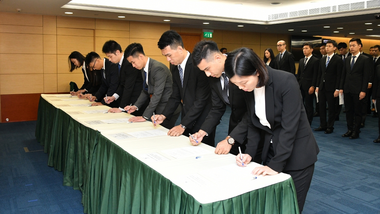 就職儀式上,薛仲明局長敦促各人員在執行職務時必須廉潔奉公、遵紀守法,申明局方對於違法違紀個案的態度和立場,要求各人不斷提高對專業操守及職業道德的要求;亦勉勵同事持續增進專業能力和執法技巧,在所屬團隊中發揮所長,致力預防和打擊罪案,不負公眾對警隊的期望。