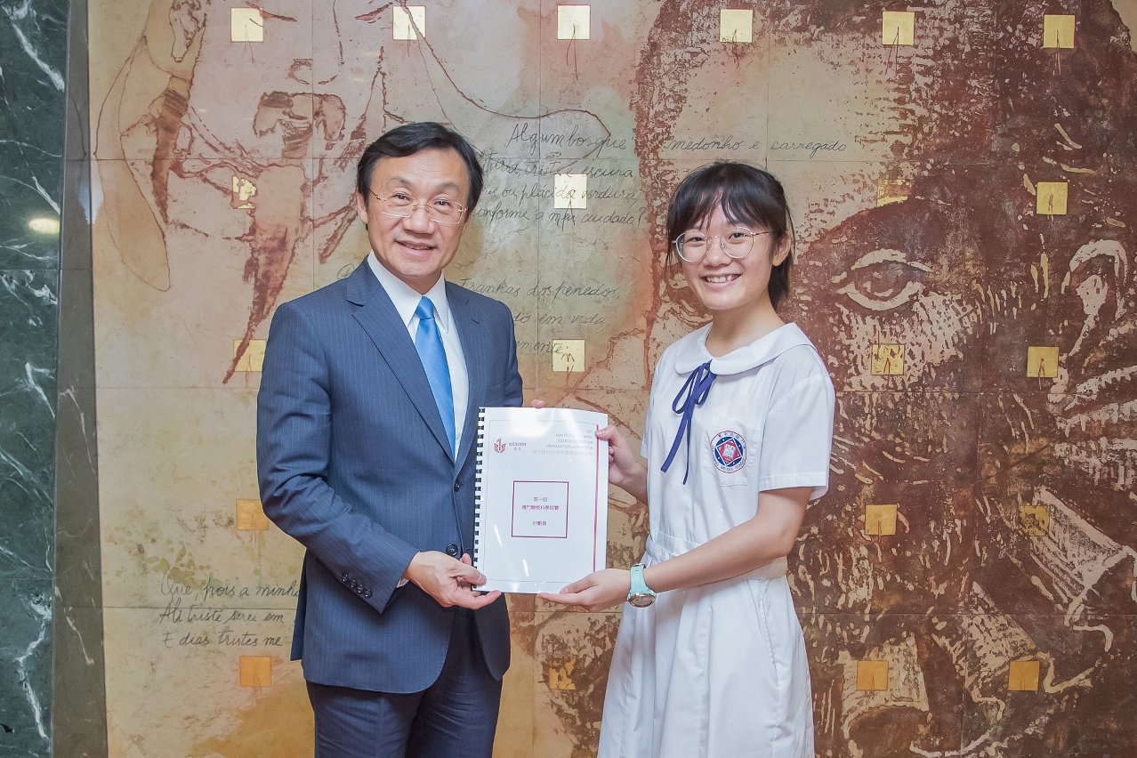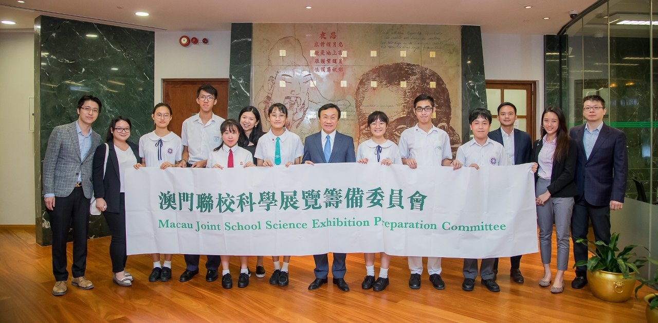 第一屆澳門聯校科學展覽學生籌備委員會李伊晴、林倩玉、黎朗妍等一行介紹,由本澳八所學校的中學生共同發起,成立了由83名學生成員組成的籌備委員會,項目的統籌、計劃及主題構想均由學生為主導,將在10月上旬舉行首屆聯校科學展。通過組織中學生參與科學比賽及參加展覽,互相學習、互相交流,共同提升自身的能力水平。