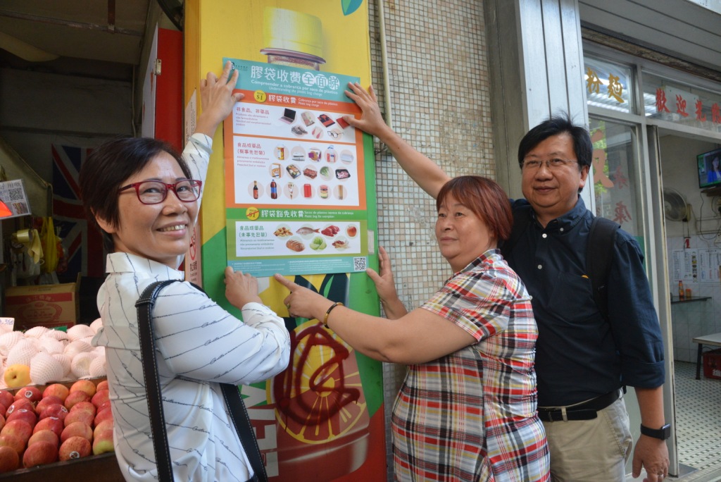 環保局譚偉文局長、民建聯、消委會代表等今日上午聯同義工,在祐漢街市和附近一帶向市民派發宣傳單張,藉此宣傳法律即將生效,期望各界能積極配合。環保局人員向市民介紹法律的重點並非收費或處罰,而是希望大家能減少使用塑膠袋並自備購物袋,營造社會的減塑氛圍,以減少塑膠袋對環境造成的負面影響。消費者只要養成自備購物袋的習慣,就無須負擔額外的費用。