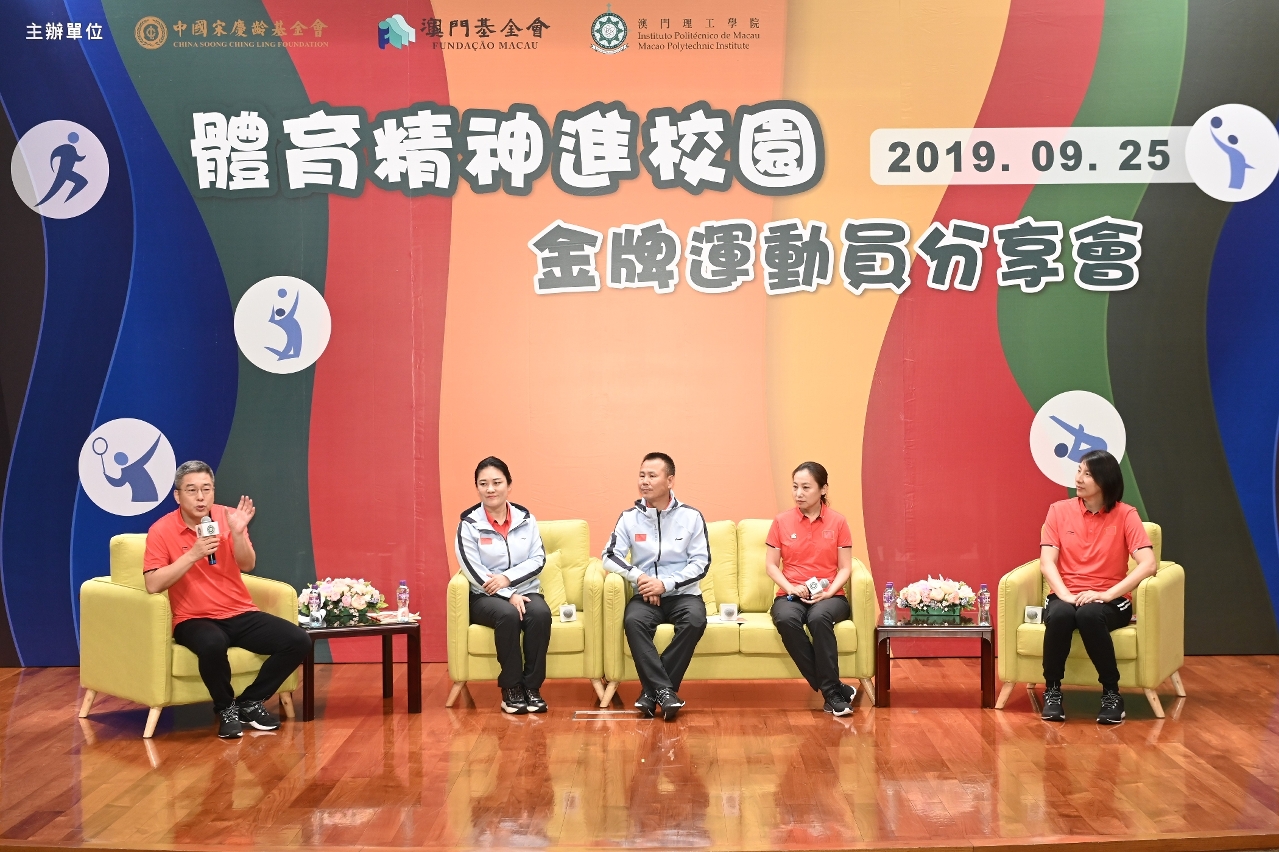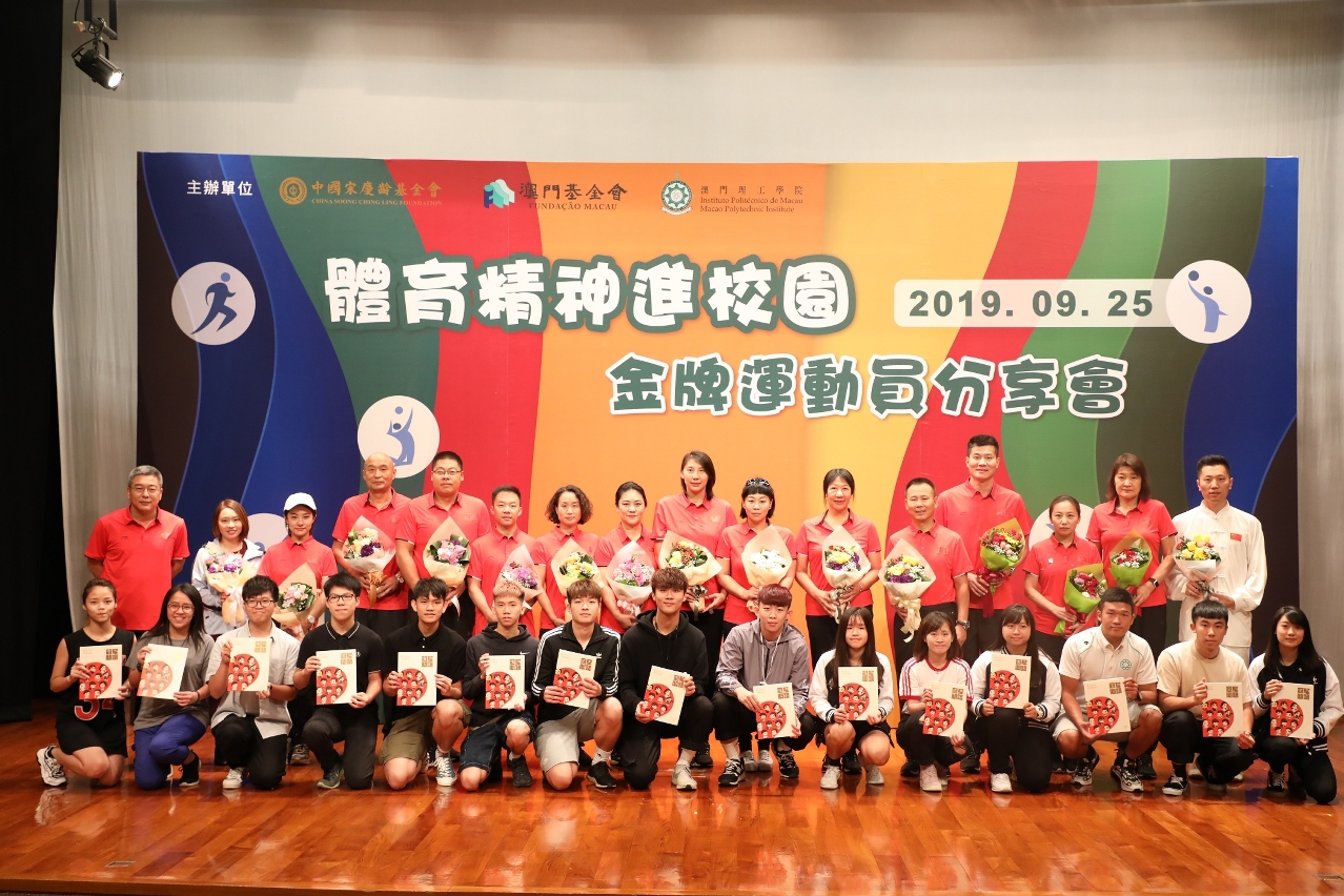 由中國宋慶齡基金會、澳門基金會及澳門理工學院合辦的“體育精神進校園”金牌運動員分享會於九月二十五日早上十時在理工學院舉行。在中國宋慶齡基金會副主席井頓泉帶領下,體育精神進校園公益代表團一行二十二人出席,分享奮鬥及成長經歷,冠軍運動員並與理工學生進行籃球及羽毛球互動,澳門基金會行政委員會委員黎振強、社團機構代表及大學生三百多人出席,氣氛熱烈、勵志感人。