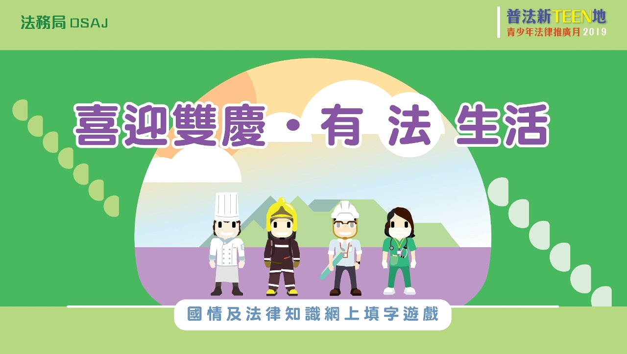 今年是中華人民共和國成立70周年和澳門回歸祖國20周年,為加強青少年和市民對《憲法》、《基本法》和澳門相關法律的認識,了解中華人民共和國成立後和澳門回歸20年以來所取得的發展成果,法務局將於10月4日起舉辦“喜迎雙慶‧有‘法’生活”國情及法律知識網上填字遊戲,歡迎年滿13歲的市民參加。