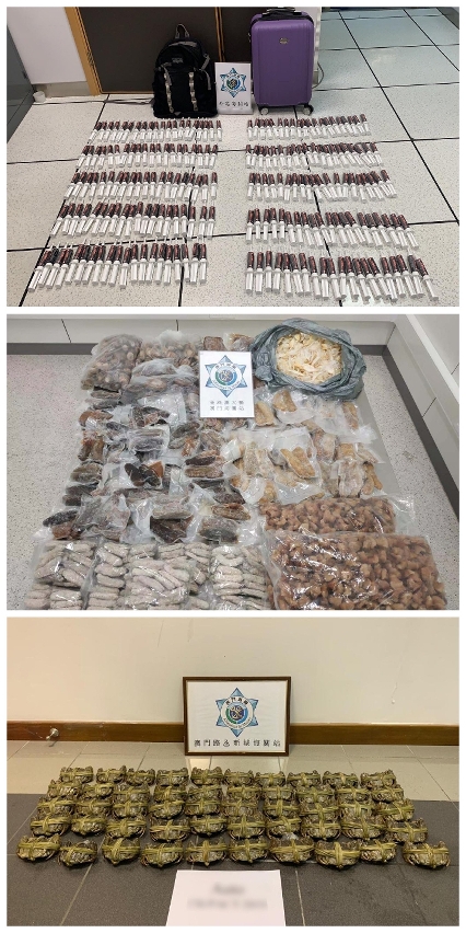 海關於本月4日至8日分別在外港客運碼頭、港珠澳大橋澳門口岸及蓮花口岸查獲三宗違規個案,檢獲的物品包括200支殺蟲藥、29.5公斤乾貨、10公斤已調製海產、5.3公斤冷凍海參及9公斤大閘蟹。各涉案人均未具備有效的申報文件,海關已根據《對外貿易法》的相關規定作出起訴。海關重申,將持續加強口岸檢查工作,打擊各類不法販運活動。