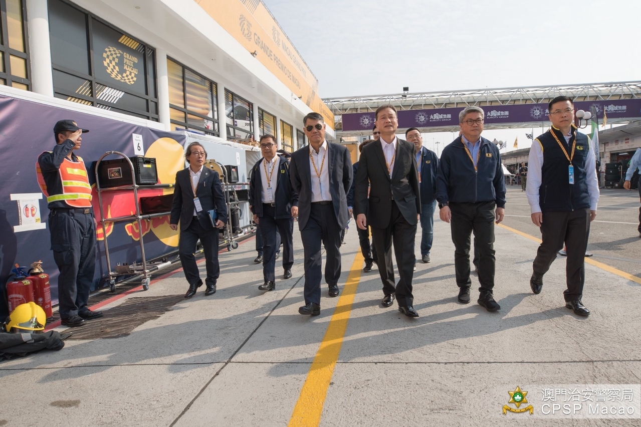 今早,警察總局馬耀權局長、治安警察局梁文昌局長及各領導主管到格蘭披治賽車大樓,與大賽車安保工作負責人進行工作會議,聽取各人員講解工作內容並作出指示,以及聯同大賽車組委會眾負責人巡視了各單位工作情況,為現場工作人員打氣。