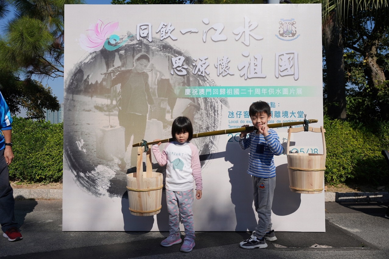 澳門本身也是一個缺水城市,早在60年前,澳門已經要依賴內地對澳供水,才能解決居民的日常生活所需,現時澳門超過96%的原水來自內地。今年是澳門回歸祖國20周年,經濟急速發展,社會欣欣向榮,全部離不開祖國源源不絕地為澳門供應潔淨水源。2018年,內地對澳的年供水總量已首次突破1億立方米,預計2019年的供水總量亦與去年相約。為讓市民和旅客認識澳門供水事務的歷程,局方也在氹仔客運碼頭離境大堂舉辦了“同飲一江水‧思源懷祖國”慶祝澳門回歸祖國二十周年供水圖片展,推廣飲水思源的理念。